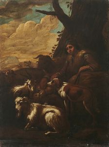 Paesaggio con pastore e animali