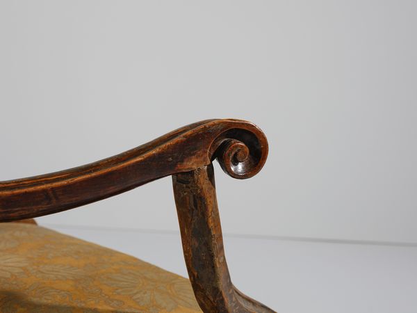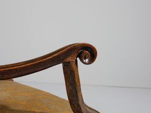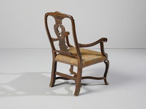 Dimensioni poltrona: 101,5x66x62 cm. Provenienza: Collezione privata, Padova.Bibliografia di riferimento: G. Manni, 'Mobili Antichi in Emilia Romagna', Modena 1993, p. 233 (fig. 498) e p.235 (fig. 503).