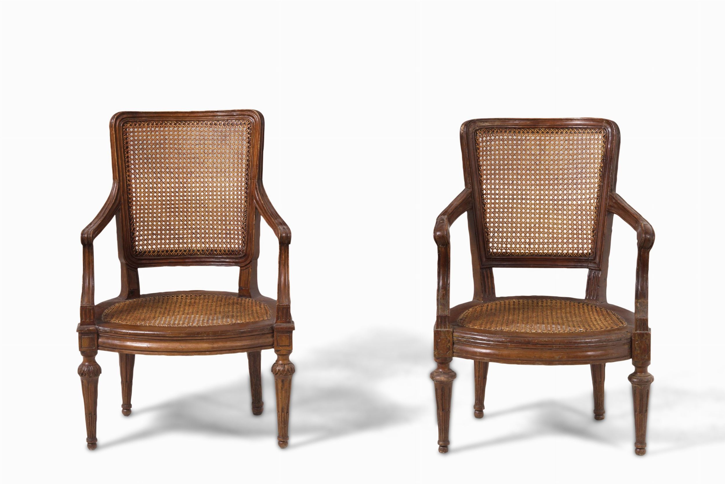 Coppia di poltrone in noce intagliato. XVIII-XIX secolo