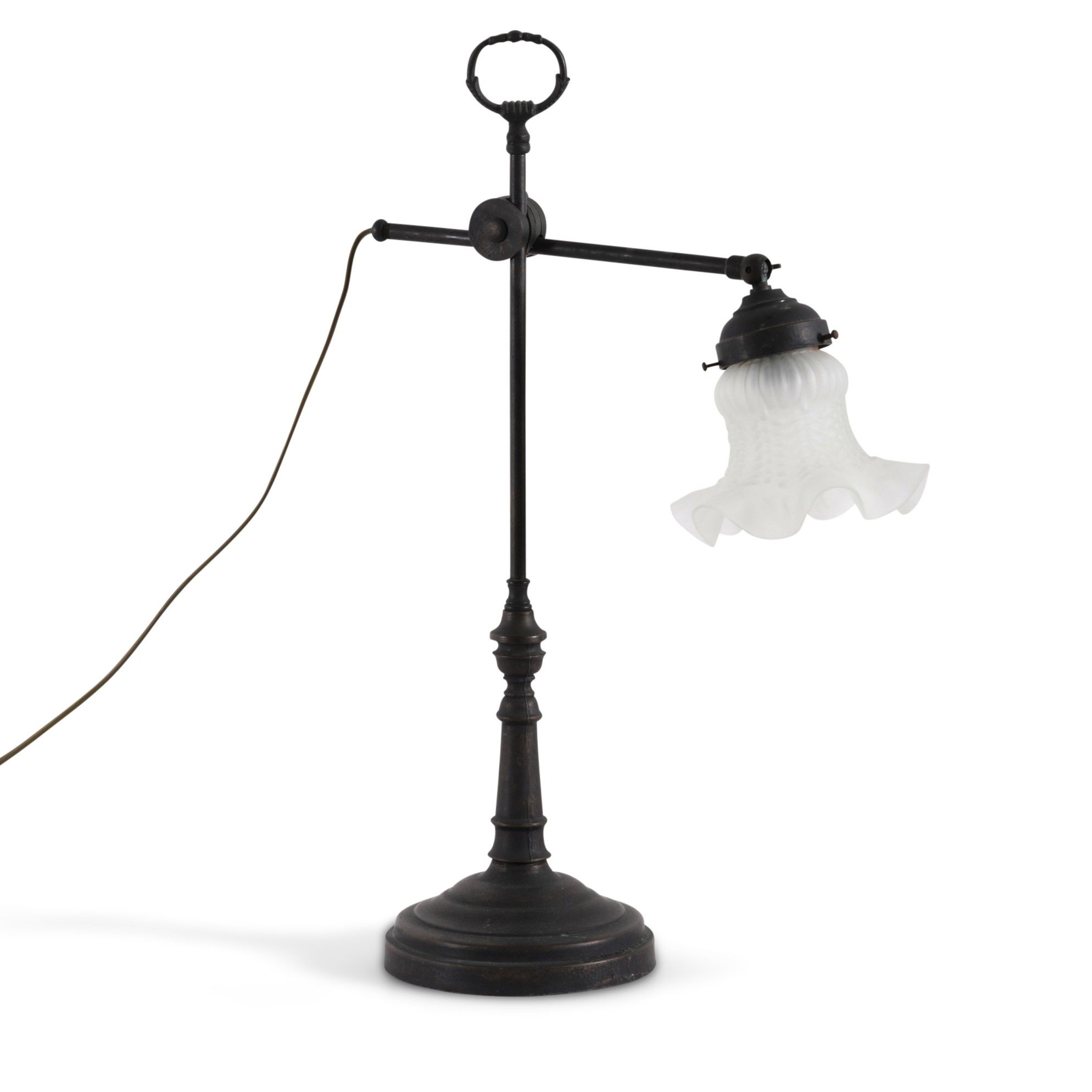 Lampada da tavolo in metallo con diffusore in vetro. XX secolo