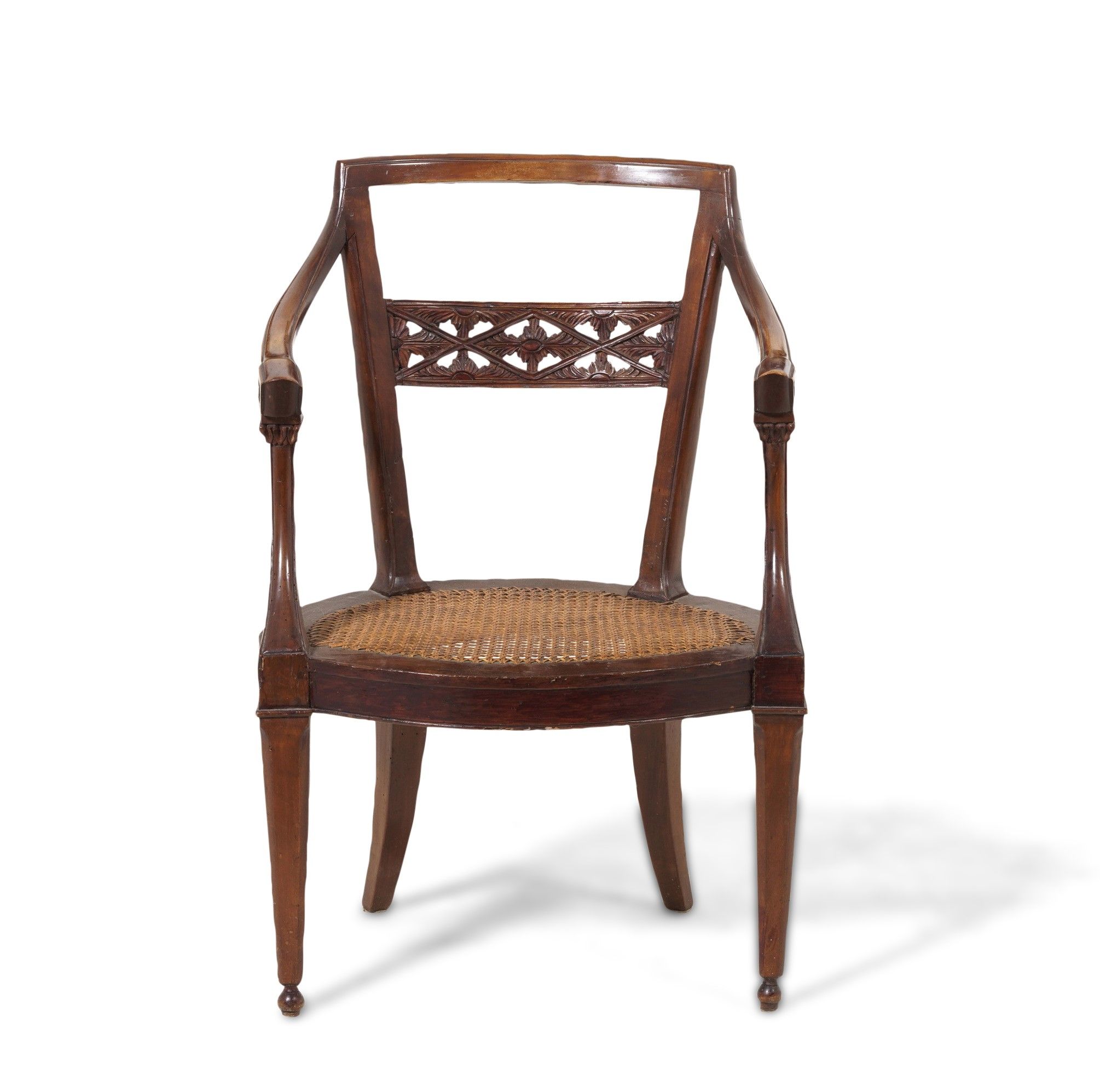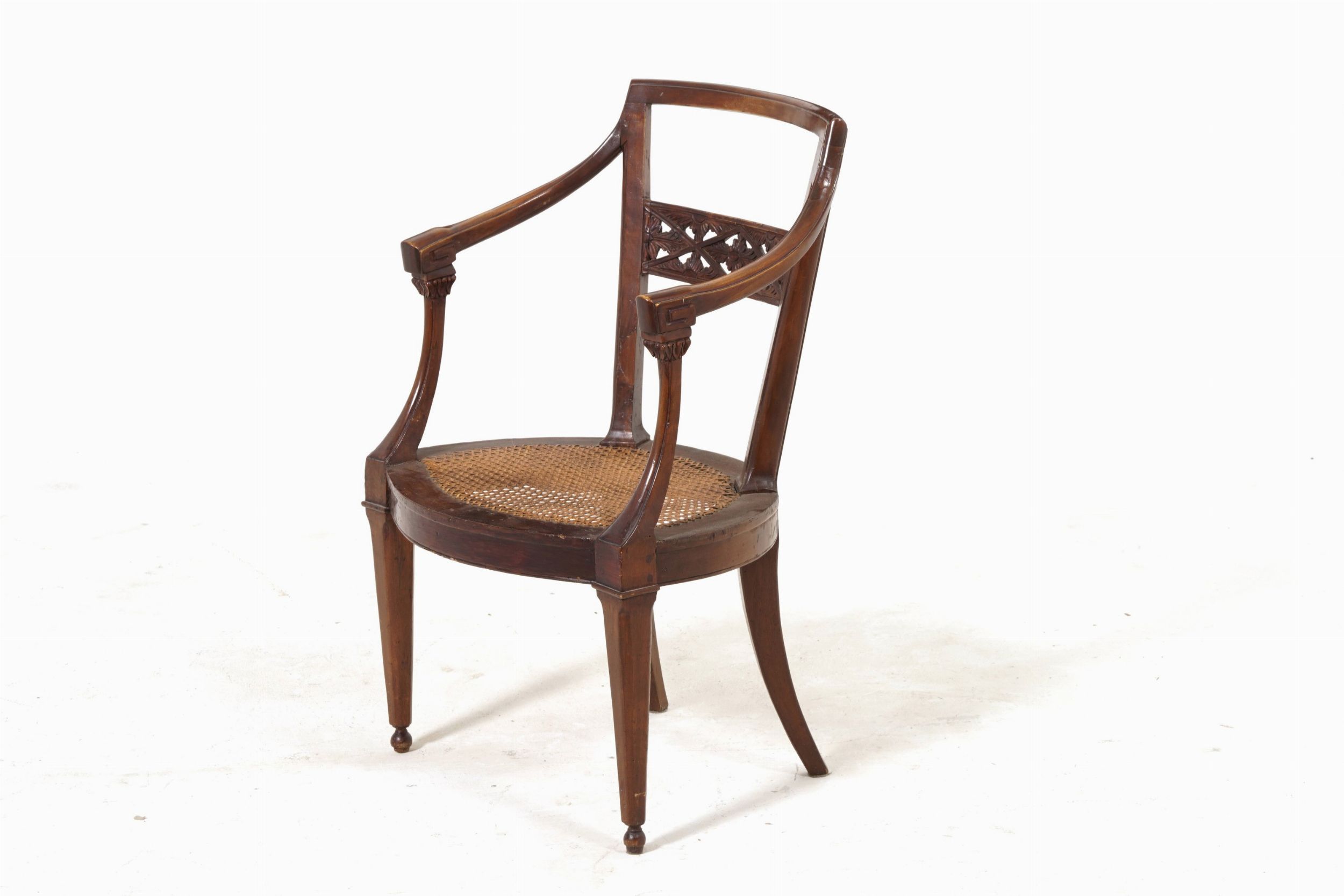 Sedia in legno con schienale intagliato e seduta in cannetè. XIX secolo