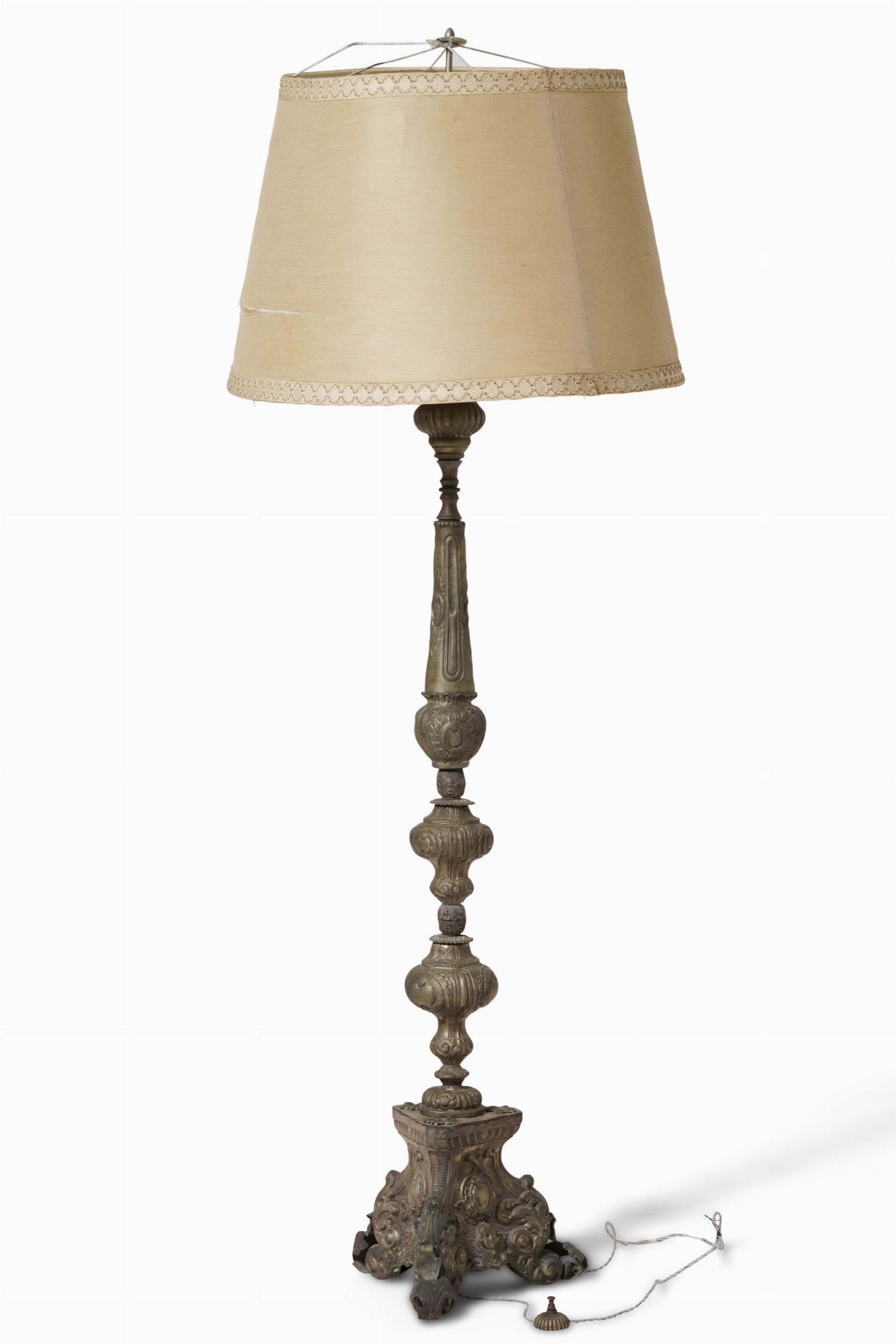 Torciere in metallo sbalzato. XIX secolo