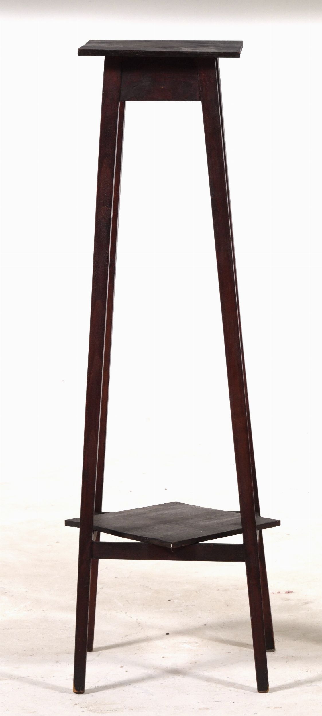 Vaso con fiori in metallo dipinto con base porta vaso in legno