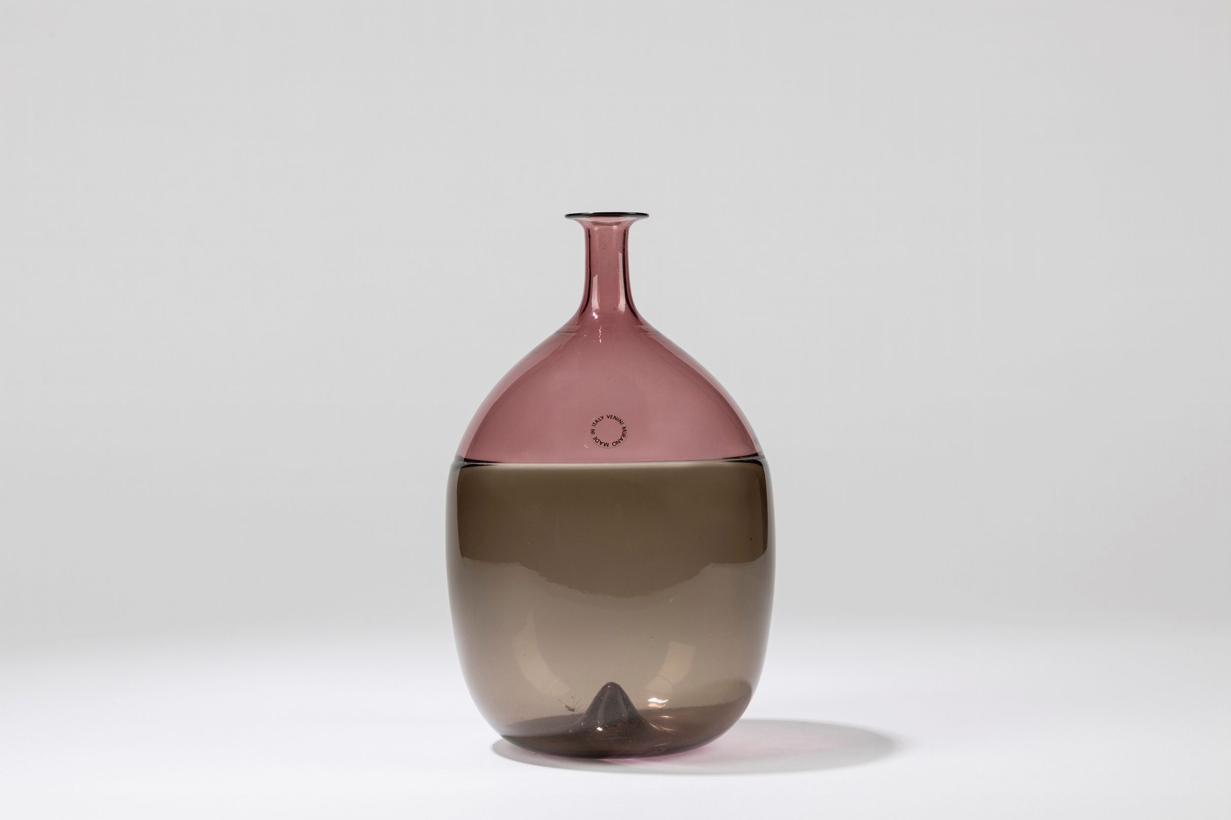 1985 vaso in vetro soffiato a incalmo. Produzione Venini Murano 19 Firma incisa sulla base Venini Italia TW 85 Etichetta originale