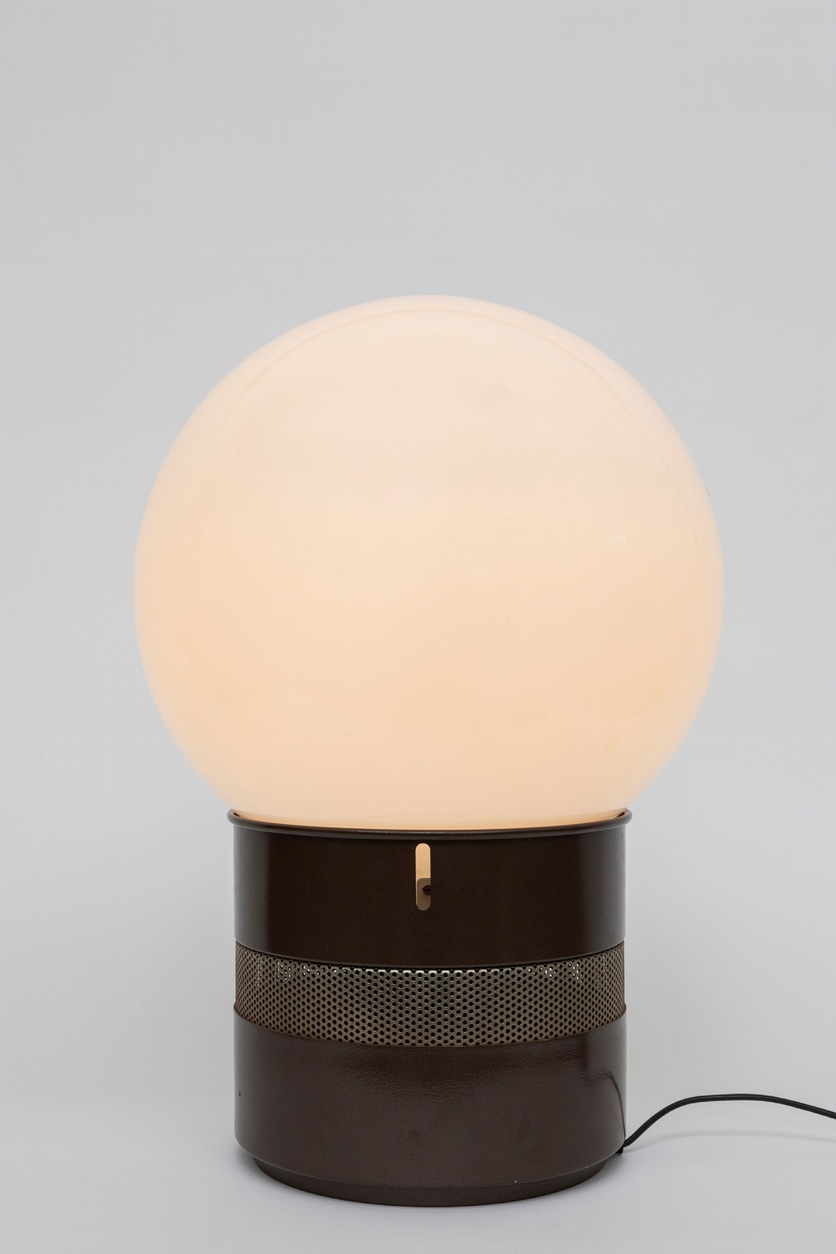 1969 lampada da tavolo con struttura in metallo laccato e diffusore in vetro opalino. Produzione Artemide