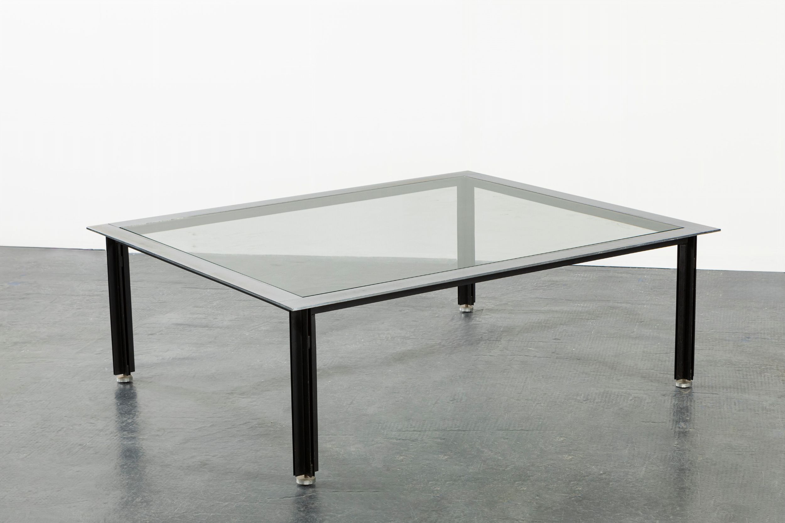 1957 Tavolino da salotto in acciaio verniciato e piano in cristallo. Produzione Azucena