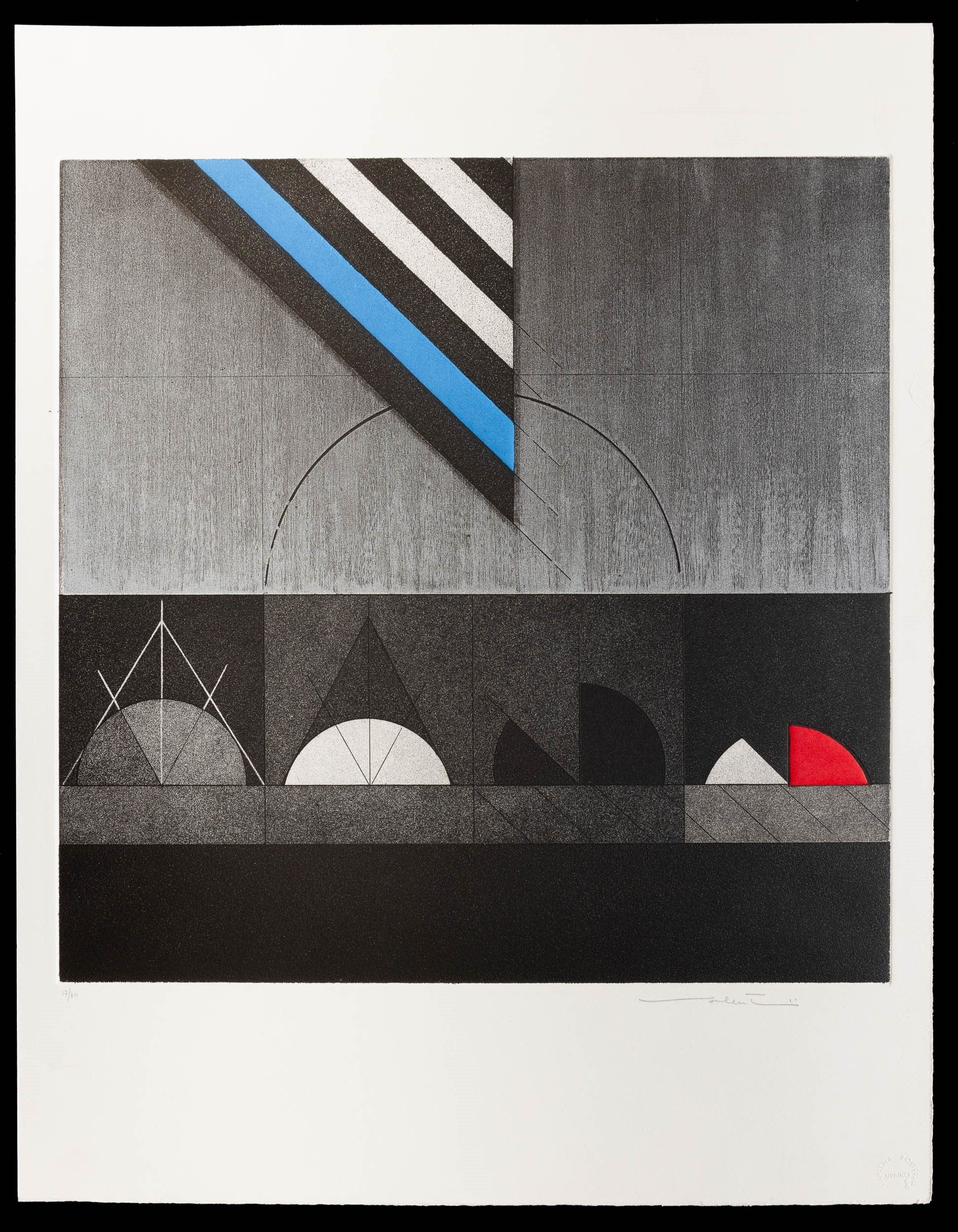 1975 es. 17/60 dimensioni lastra: cm 49,8x49,4 firmato in basso a destra, numerato in basso a sinistra carta Magnani di Pescia tiratura 60 + XV stampatore Posterula, Urbino