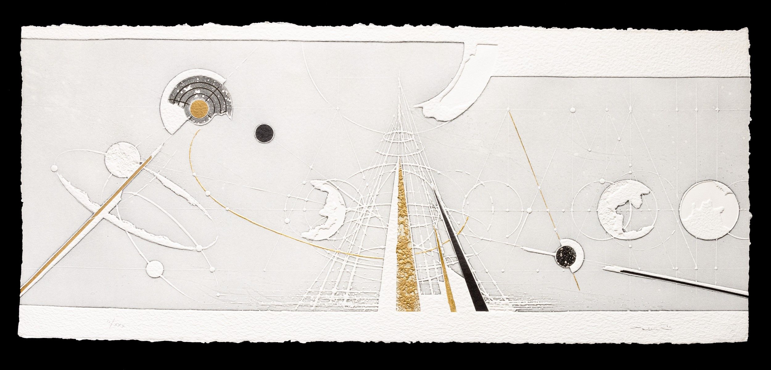 acquaforte con retouche con foglia d'oro, Largh. 109 - Alt. 47 Cm