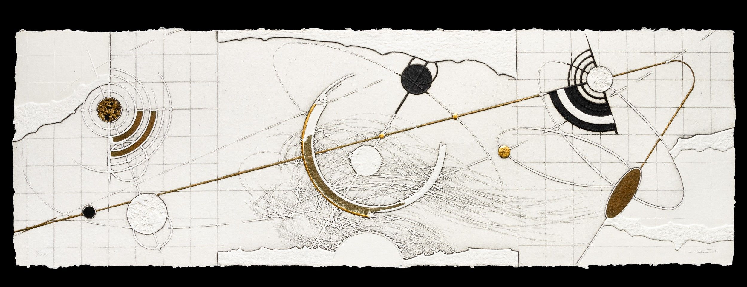 acquaforte con retouche con foglia d'oro, Largh. 112,5 - Alt. 37 Cm