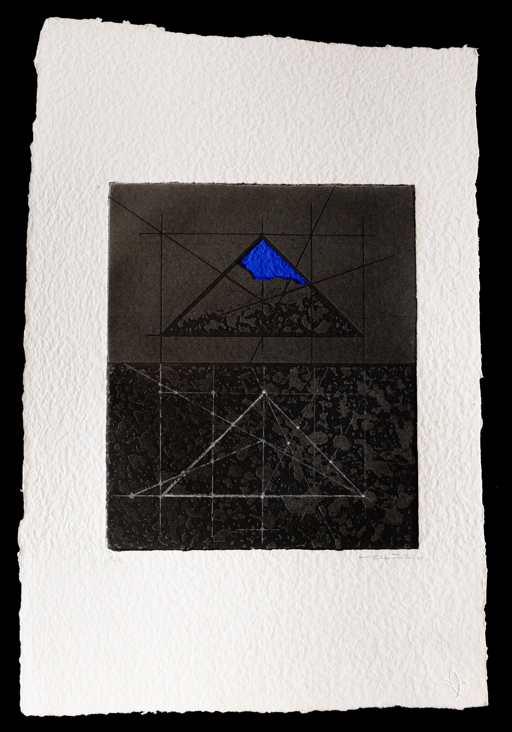 1985 es. p.a. dimensioni lastra: cm 25x21,1 firmato e datato in basso a destra, numerato in basso a sinistra carta Duchene tiratura 90 + X + 2 P.A. stampatore Sardella, Milano