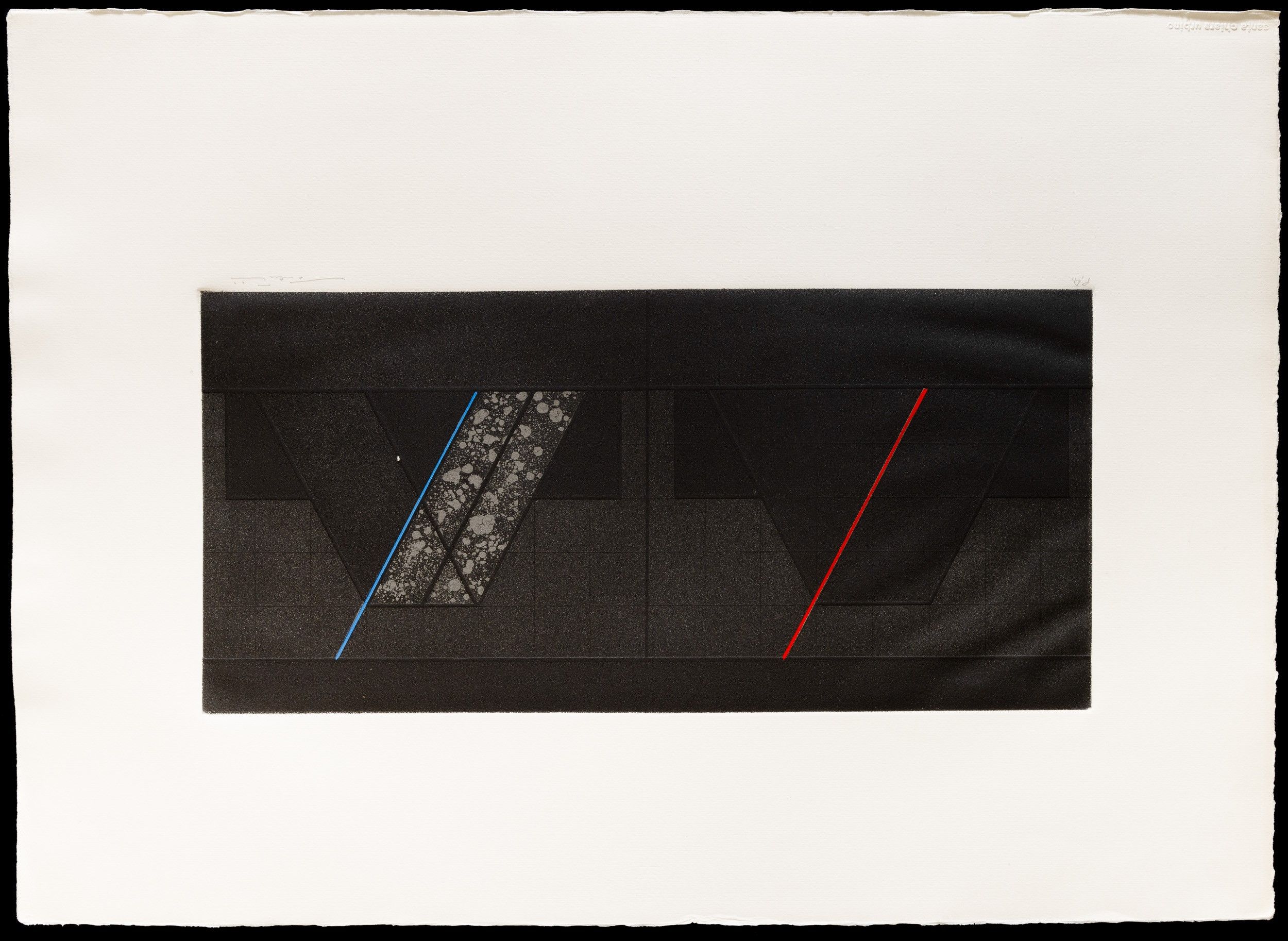 acquaforte acquatinta, Largh. 69,8 - Alt. 50,3 Cm 1978 es. P.A. dimensioni lastra: cm 23,2x49 firmato in basso a destra, numerato in basso a sinistra timbro a secco in basso a sinistra della stamperia Santa Chiara, Milano carta Magnani di Pescia tiratura 100 + XX + 3 p.a. + 1 ante litteram stamperia Posterula, Urbino