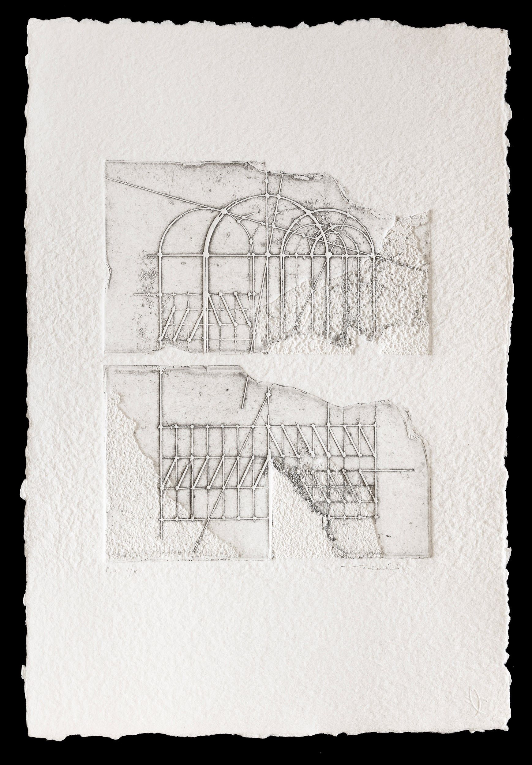 1985 es. p.a. V/X dimensioni lastra: cm 26x21,5 firmato in basso a destra, numerato in basso a sinistra carta Colombe, Moulin de Larroque tiratura 90 + X + X P.A stampatore Sardella, Milano
