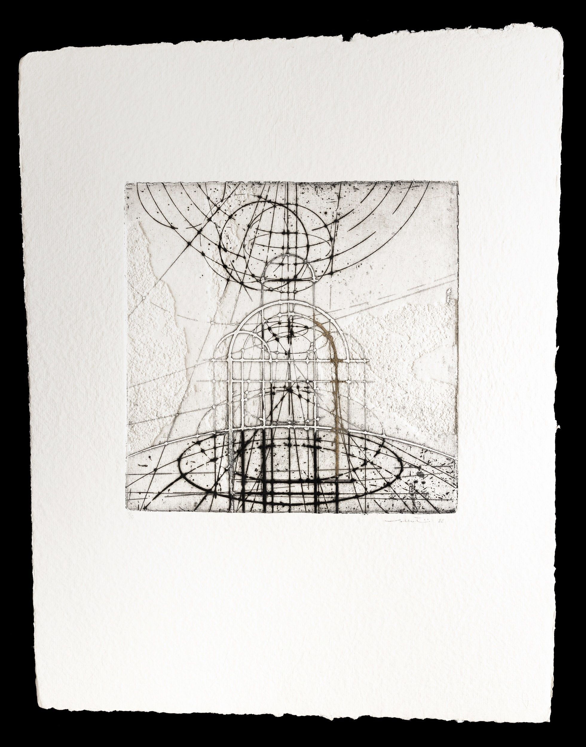1988 es. 31/60 dimensioni lastra: cm 32x32 firmato e datato in basso a destra, numerato in basso a sinistra carta Colombe, Moulin de Larroque tiratura 60 + X stampatore Sardella, Milano