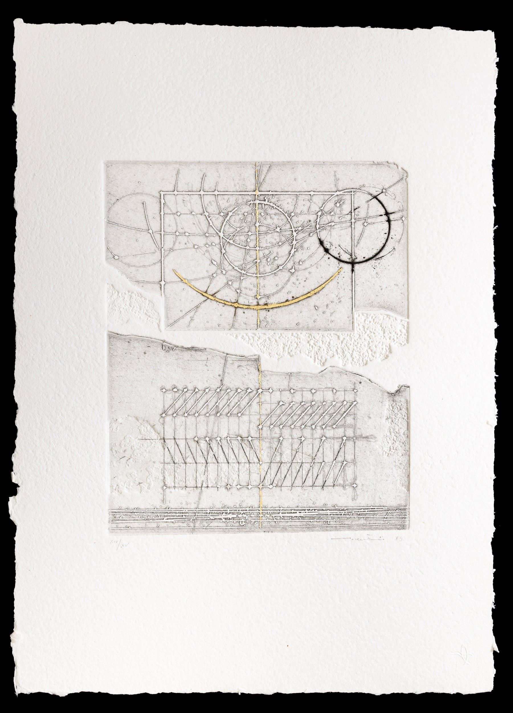 1989 es. XIV/XV dimensioni lastra: cm 34,9x29 firmato e datato in basso a destra, numerato in basso a sinistra Carta Colombe tiratura 50 + XV + III a.l. con retouchè ed. Colophon, Belluno