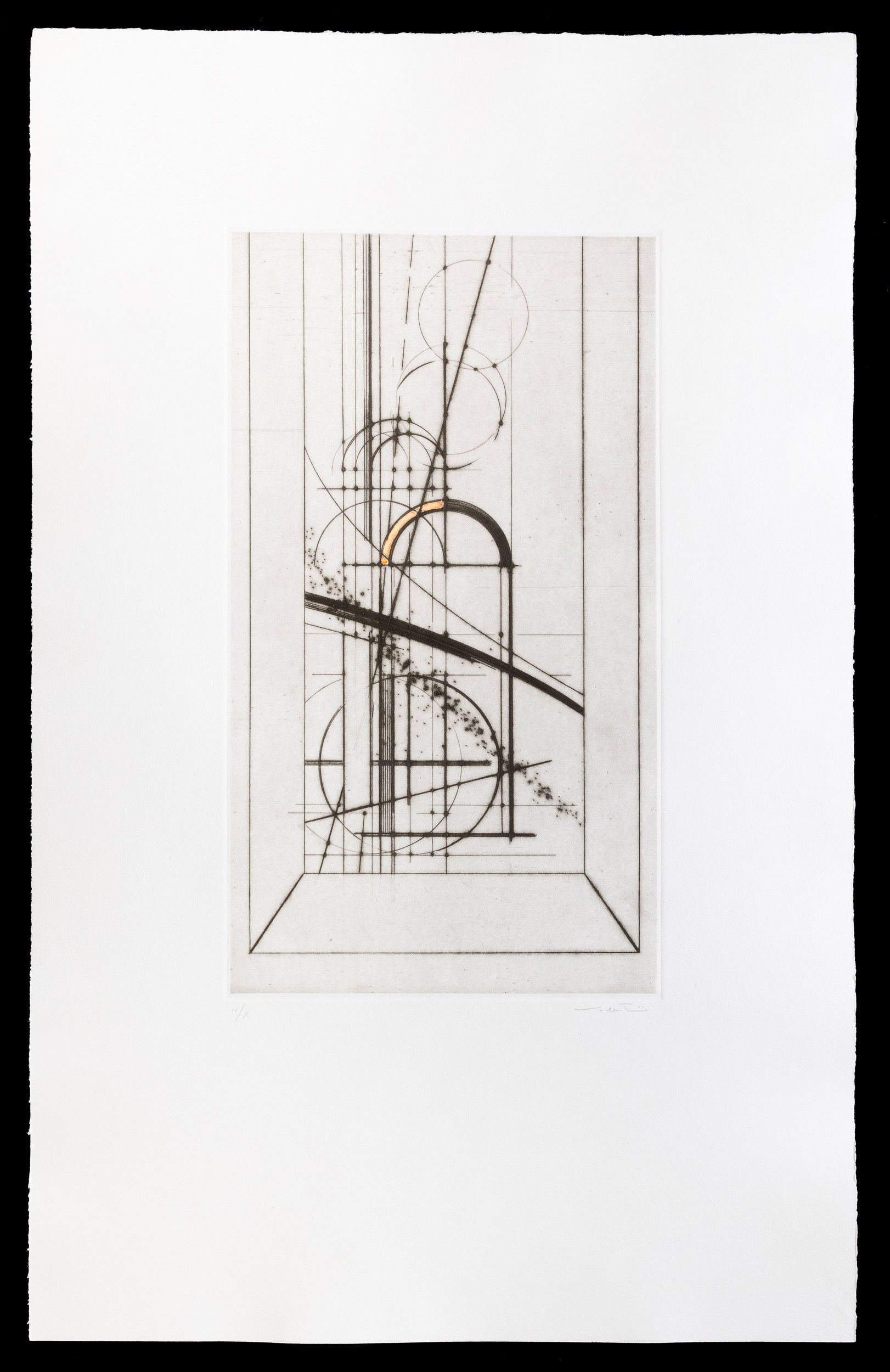 1991 es. IV/X dimensioni lastra: cm 48,5x27,5 firmato in basso a destra, numerato in basso a sinistra carta Alcantara, Sicras tiratura 27 + X + 5 p.a. stampatore G. Serafini, Pesaro ed. Della Pergola, Pesaro