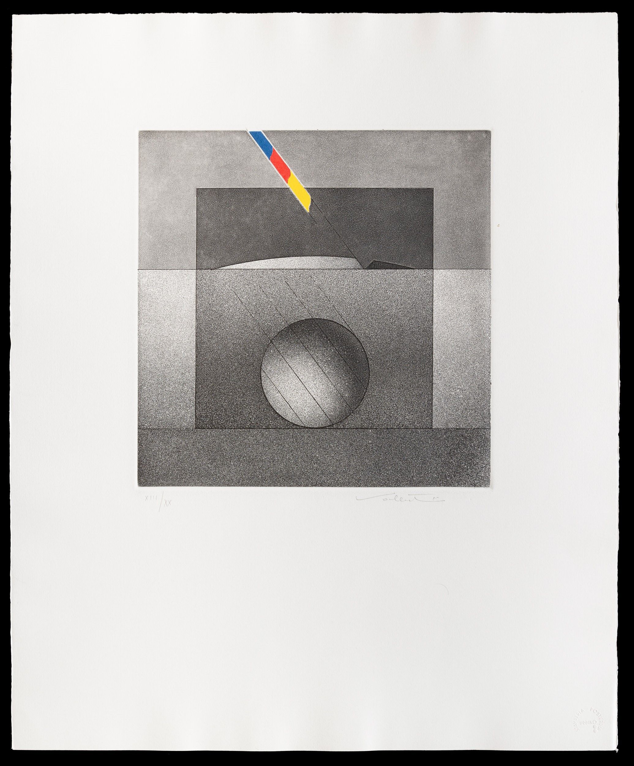 1973 es. XIII/XX dimensioni lastra: cm 29,5x29,2 firmato in basso a destra, numerato in basso a sinistra carta Magnani Pescia tiratura 100 + XX stamperia Posterula, Urbino