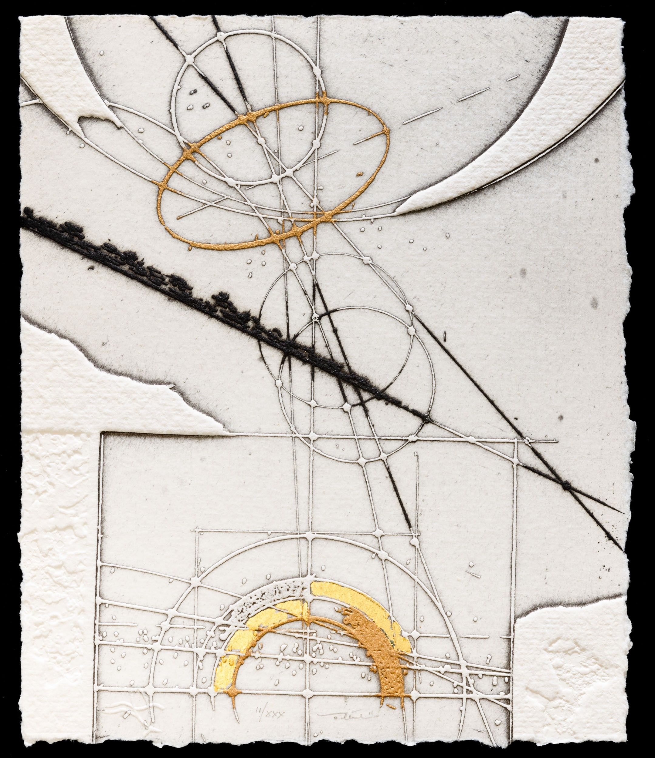 acquaforte con retouche con foglia d'oro, Largh. 22,5 - Alt. 27 Cm