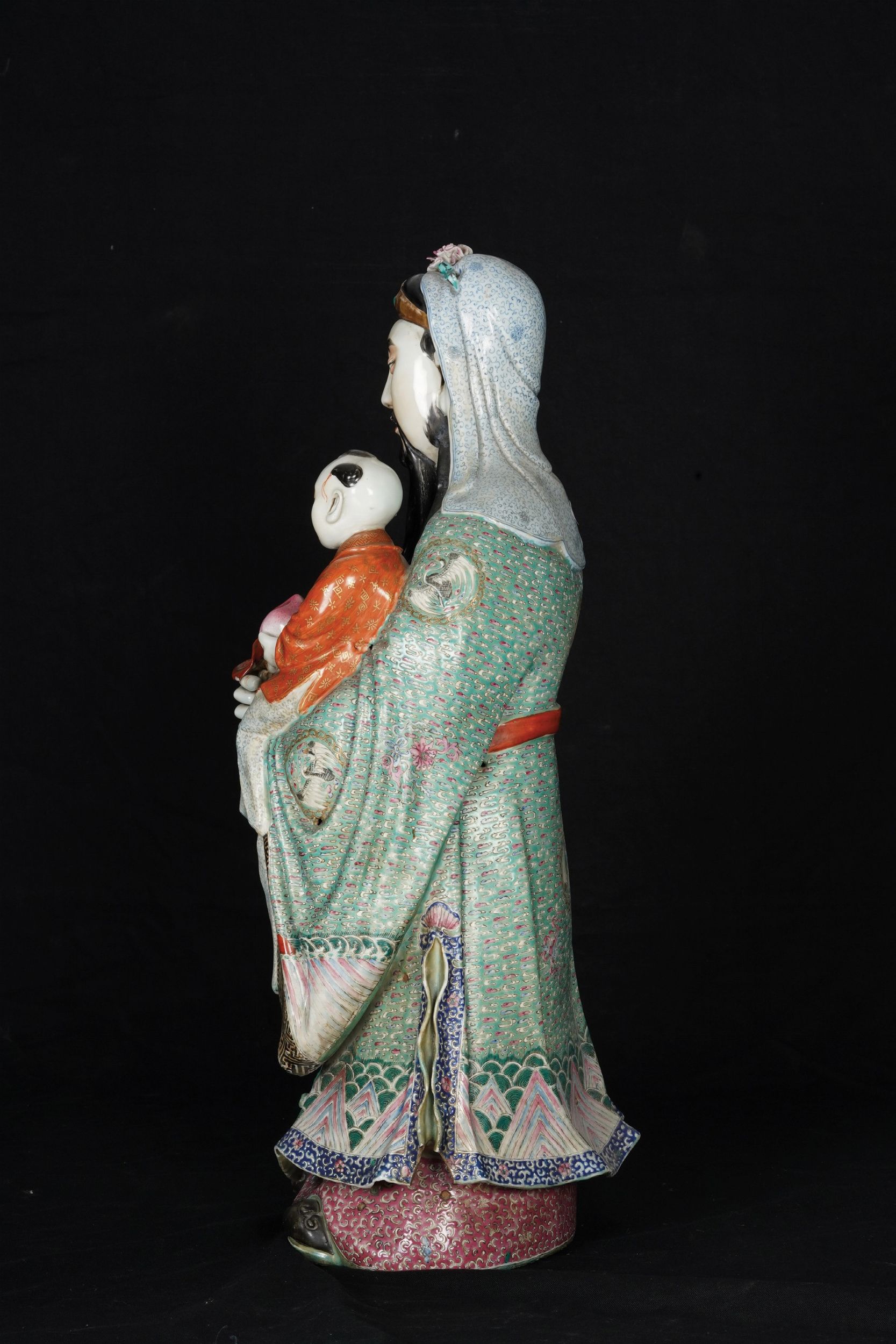 Figura di dignitario Famiglia Rosa con bambino in porcellana a smalti policromi, [..]