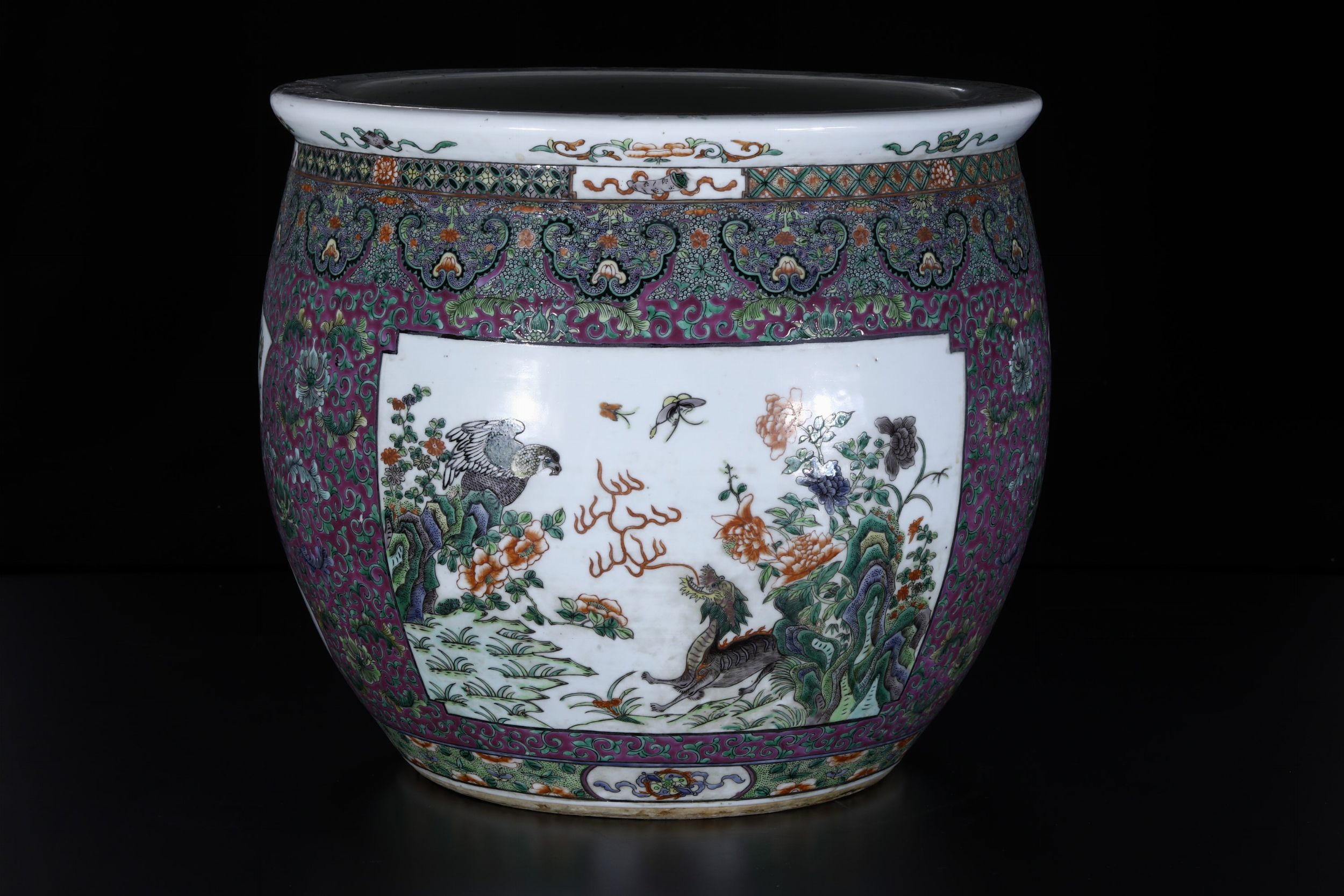 Fish Bowl in porcellana Famiglia Verde con decori naturalistici e uccelli, Cina, [..]
