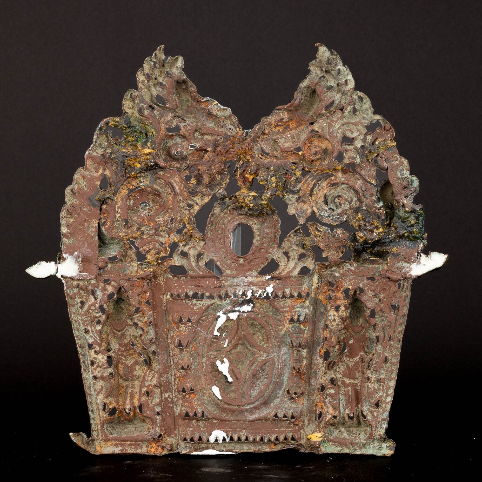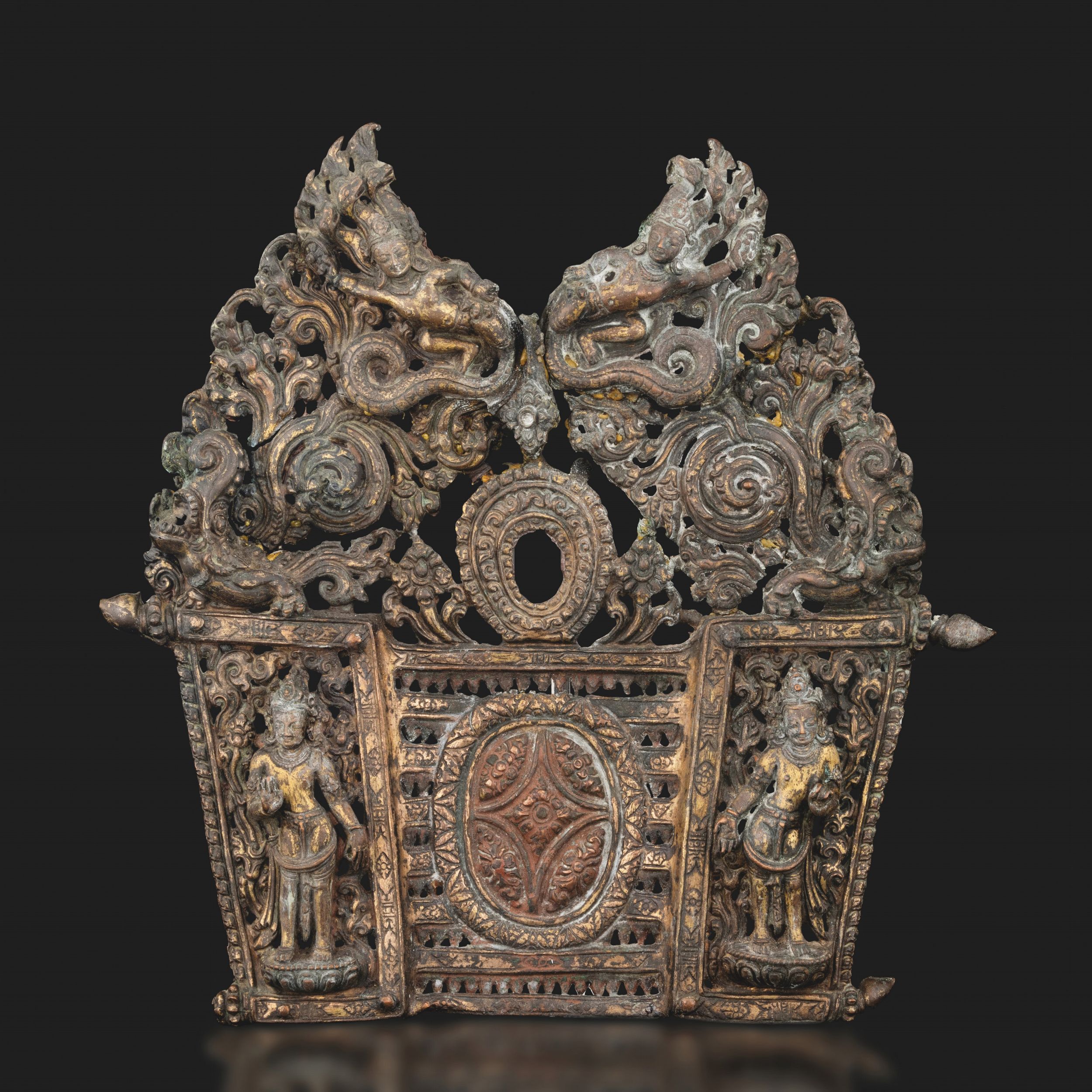 Fregio in rame sbalzato con figure di divinità, Nepal, XVIII secolo