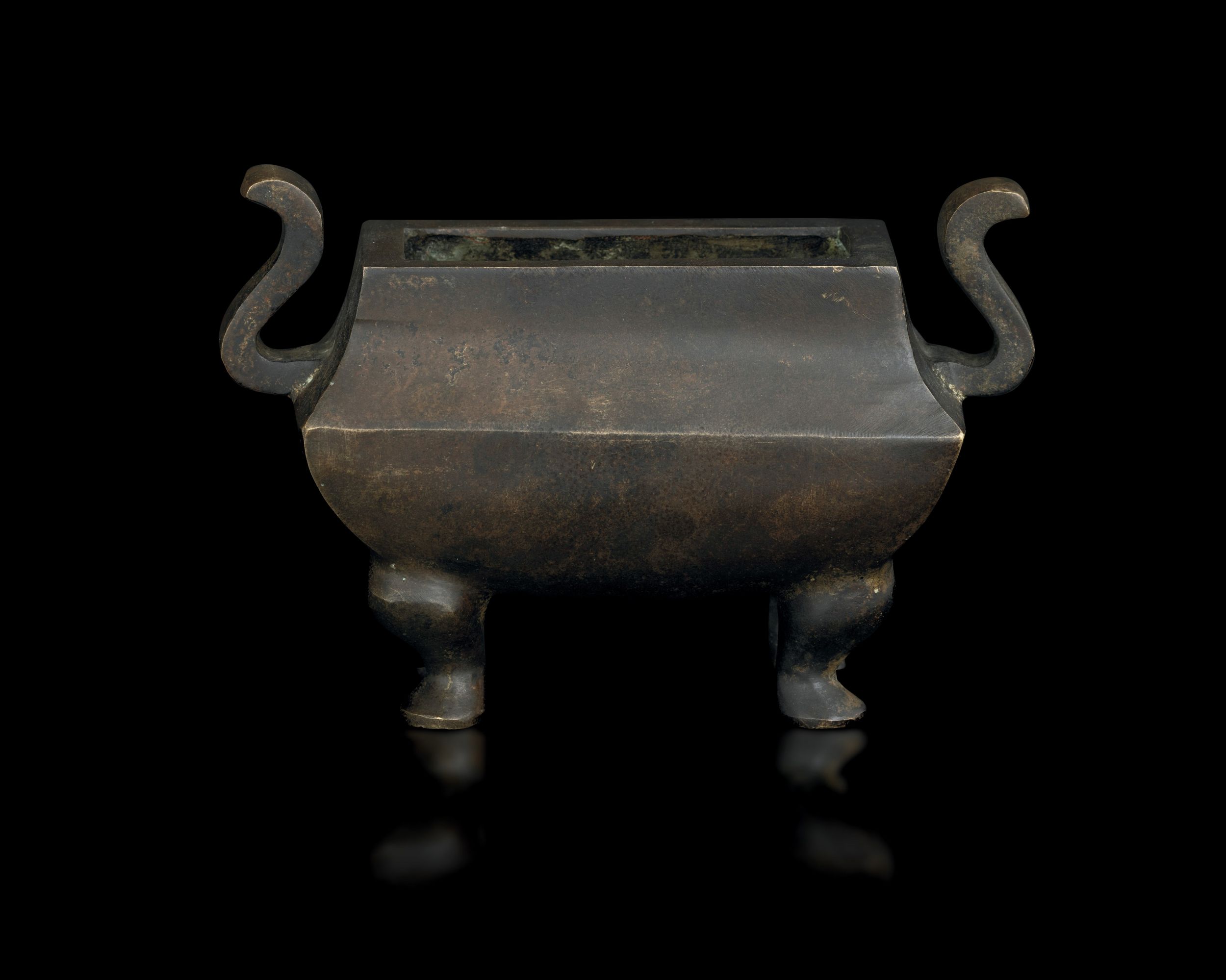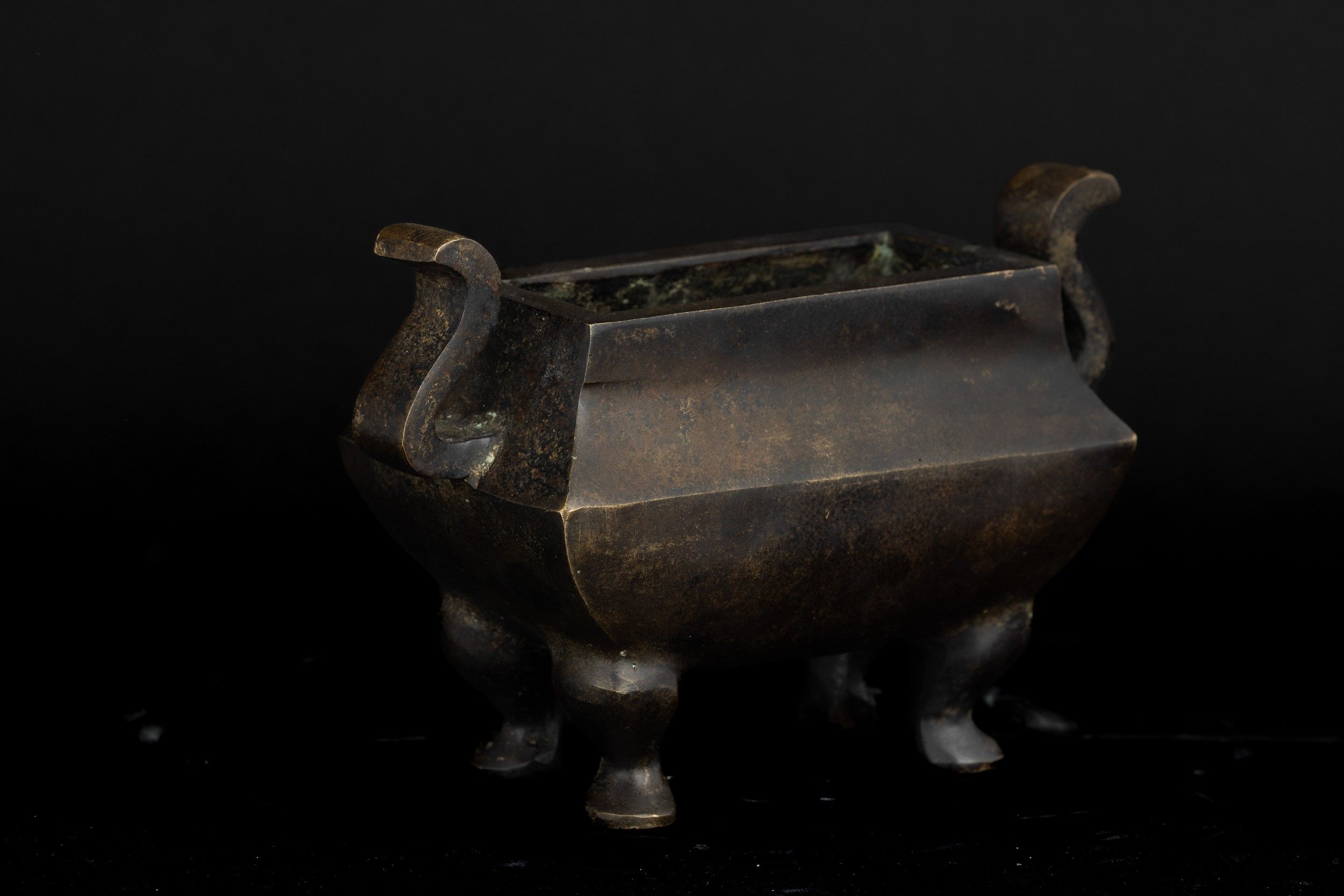 Incensiere in bronzo con forma sagomata con anse, Cina, XVIII secolo
