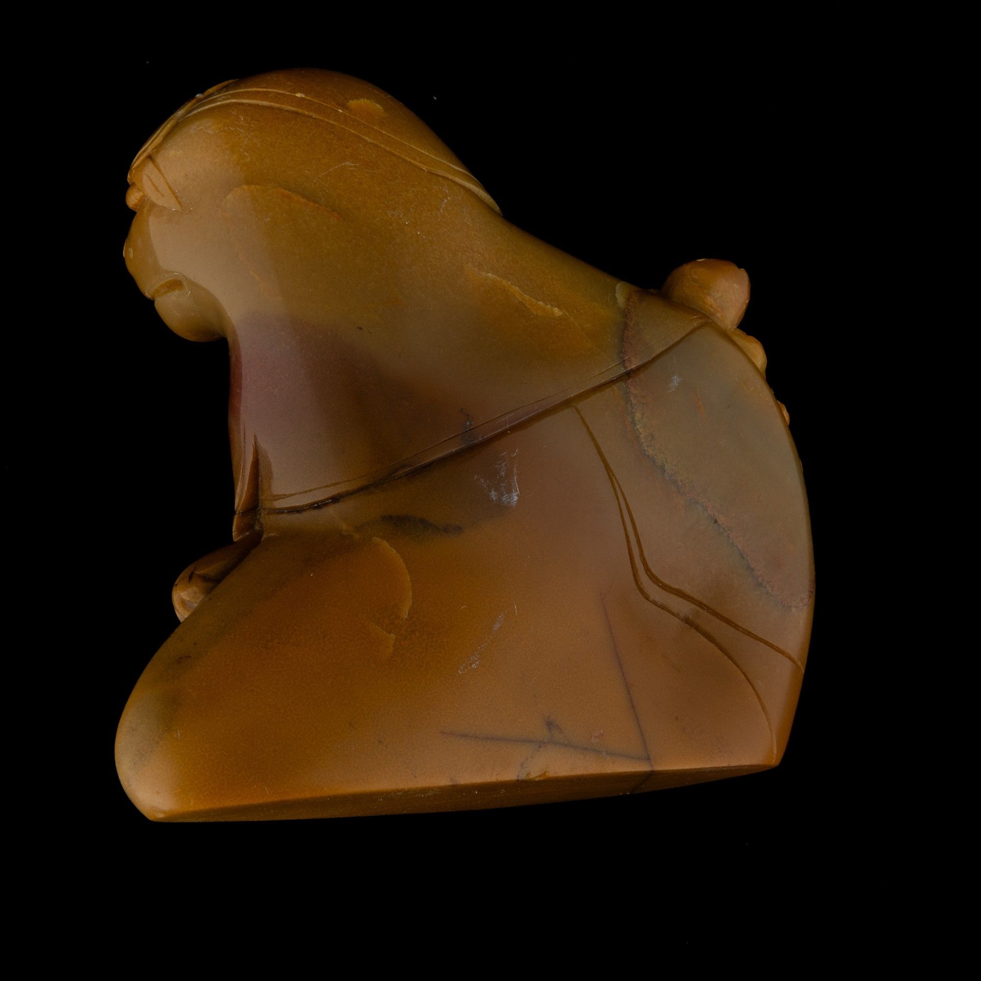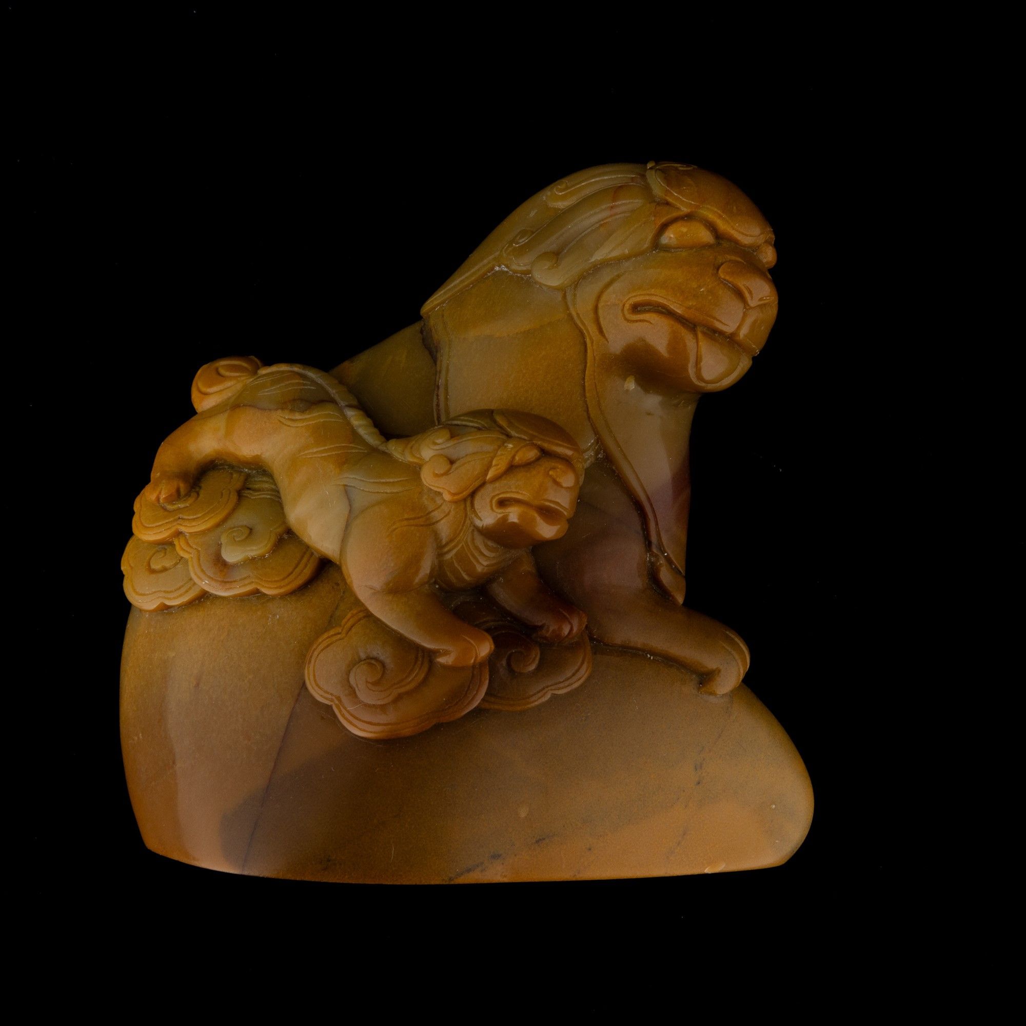 Piccola scultura in pietra shoushan raffigurante cane di Pho col suo piccolo, Cina, [..]
