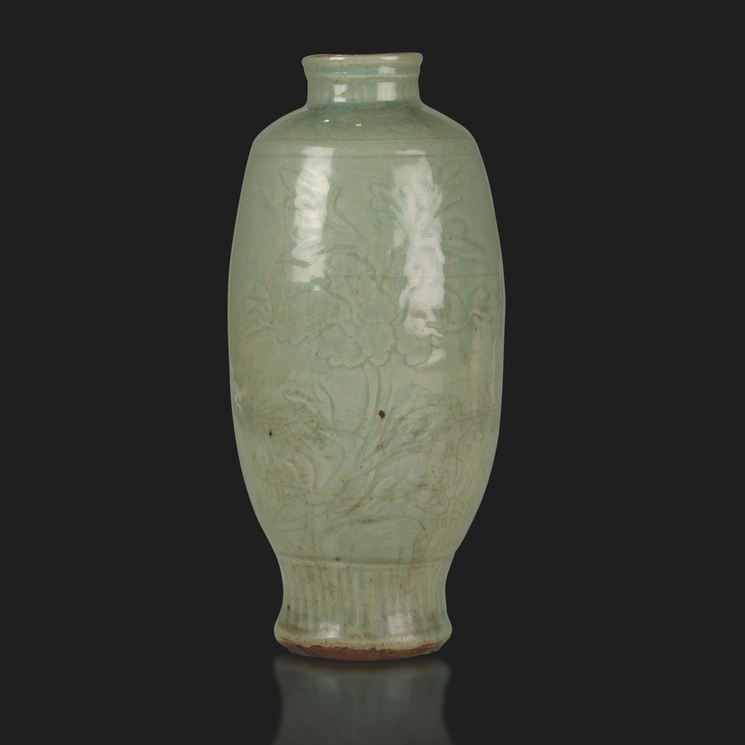 Vaso in porcellana celadon longquan a decoro floreale inciso, Cina, Dinastia Ming, [..]