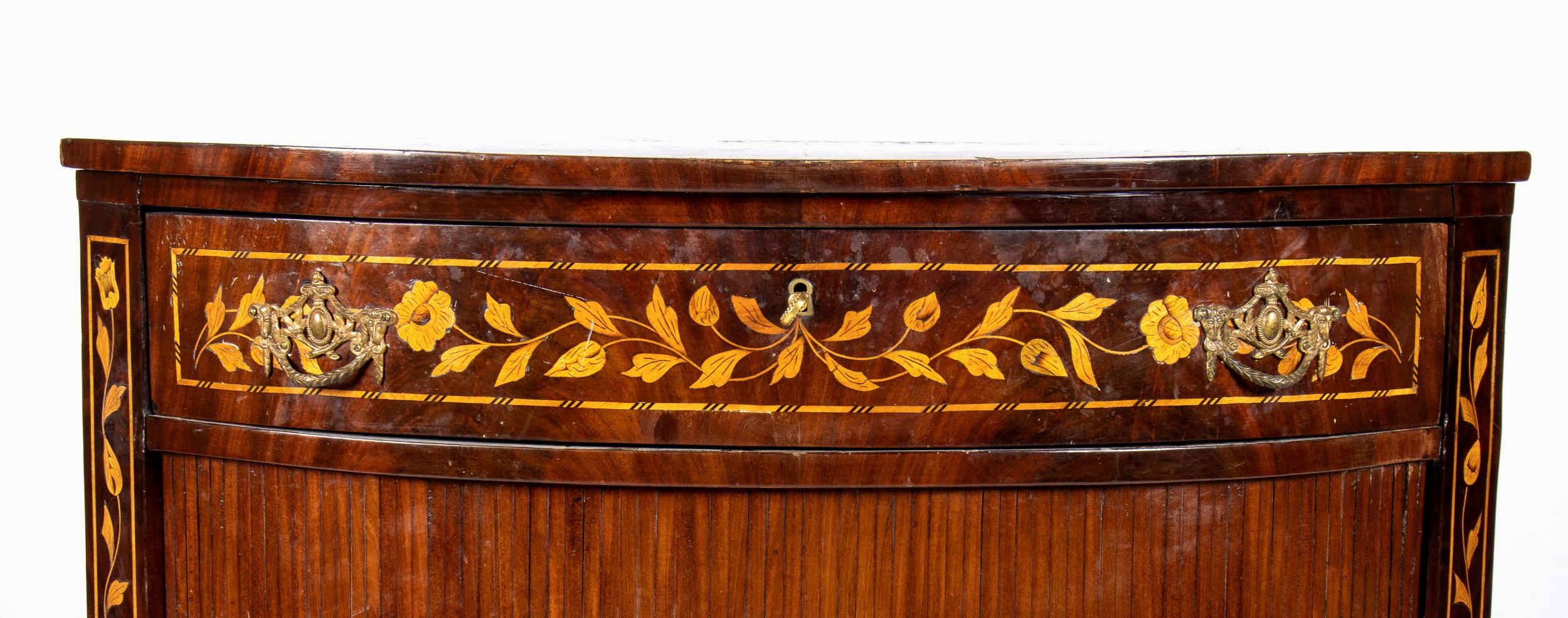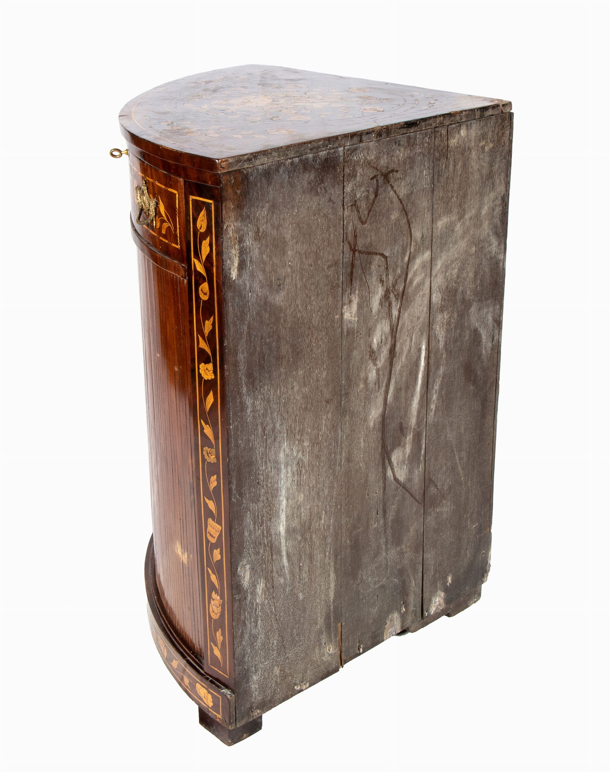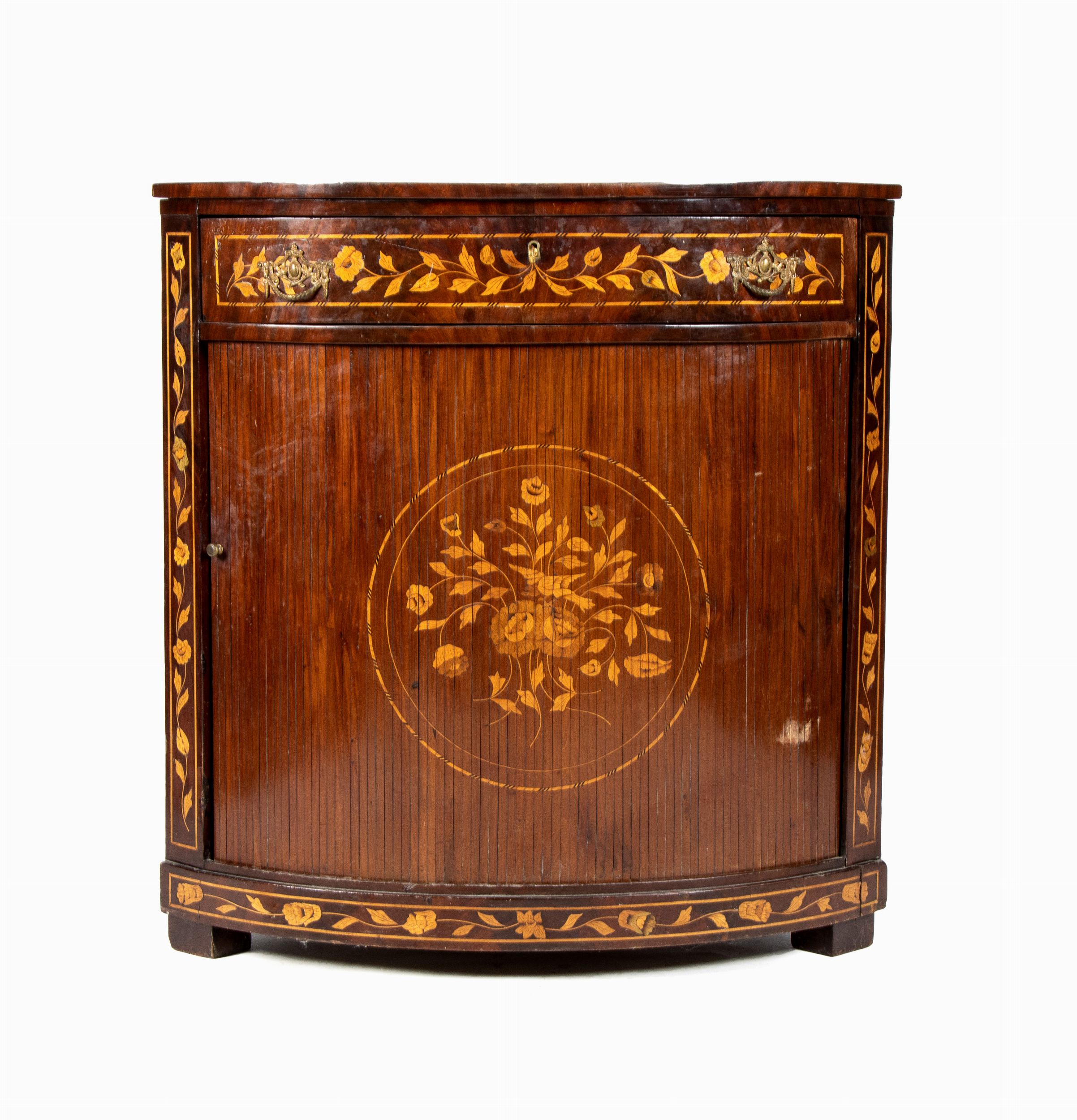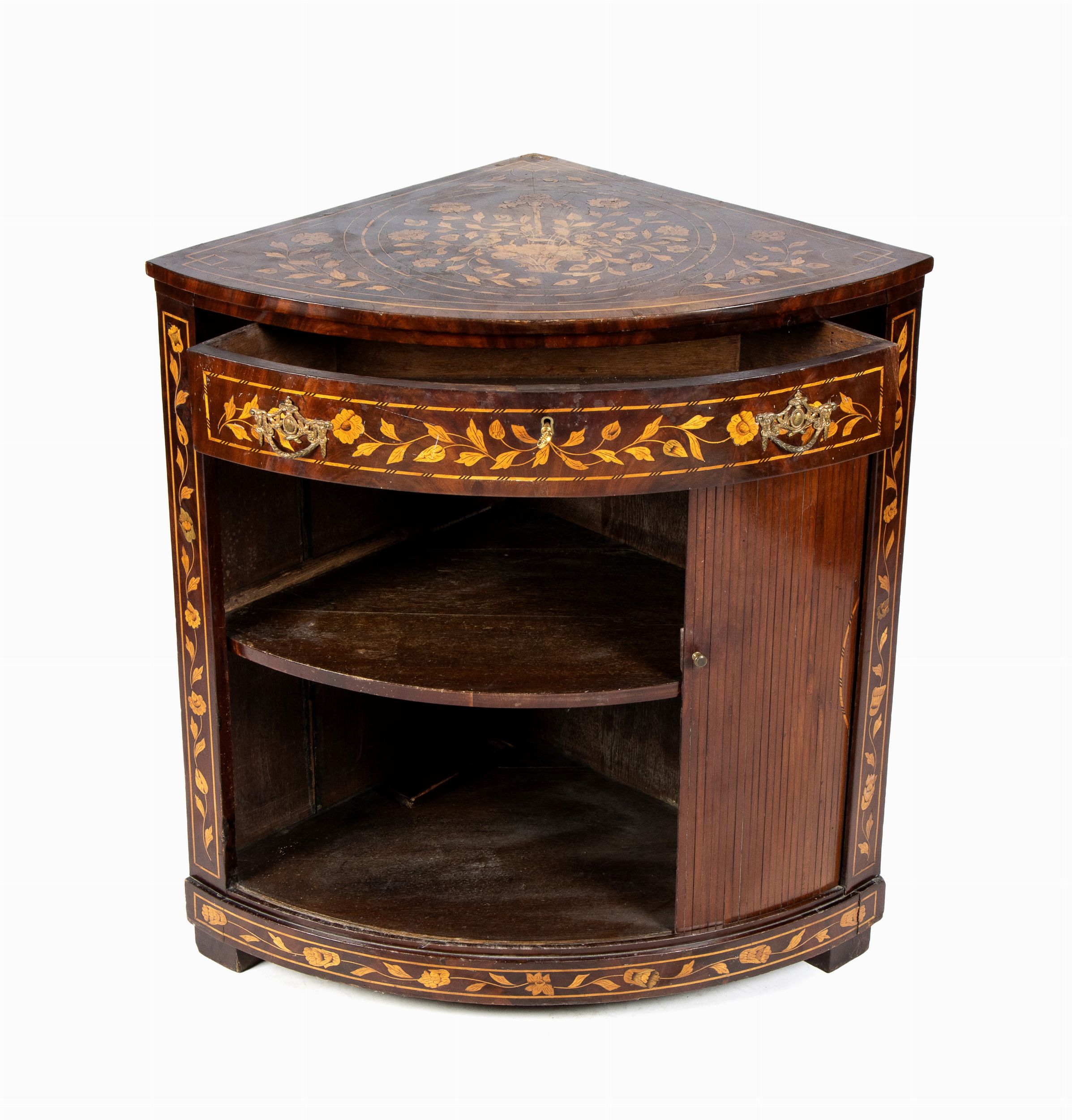 Angoliera intarsiata olandese in mogano e legni di frutto