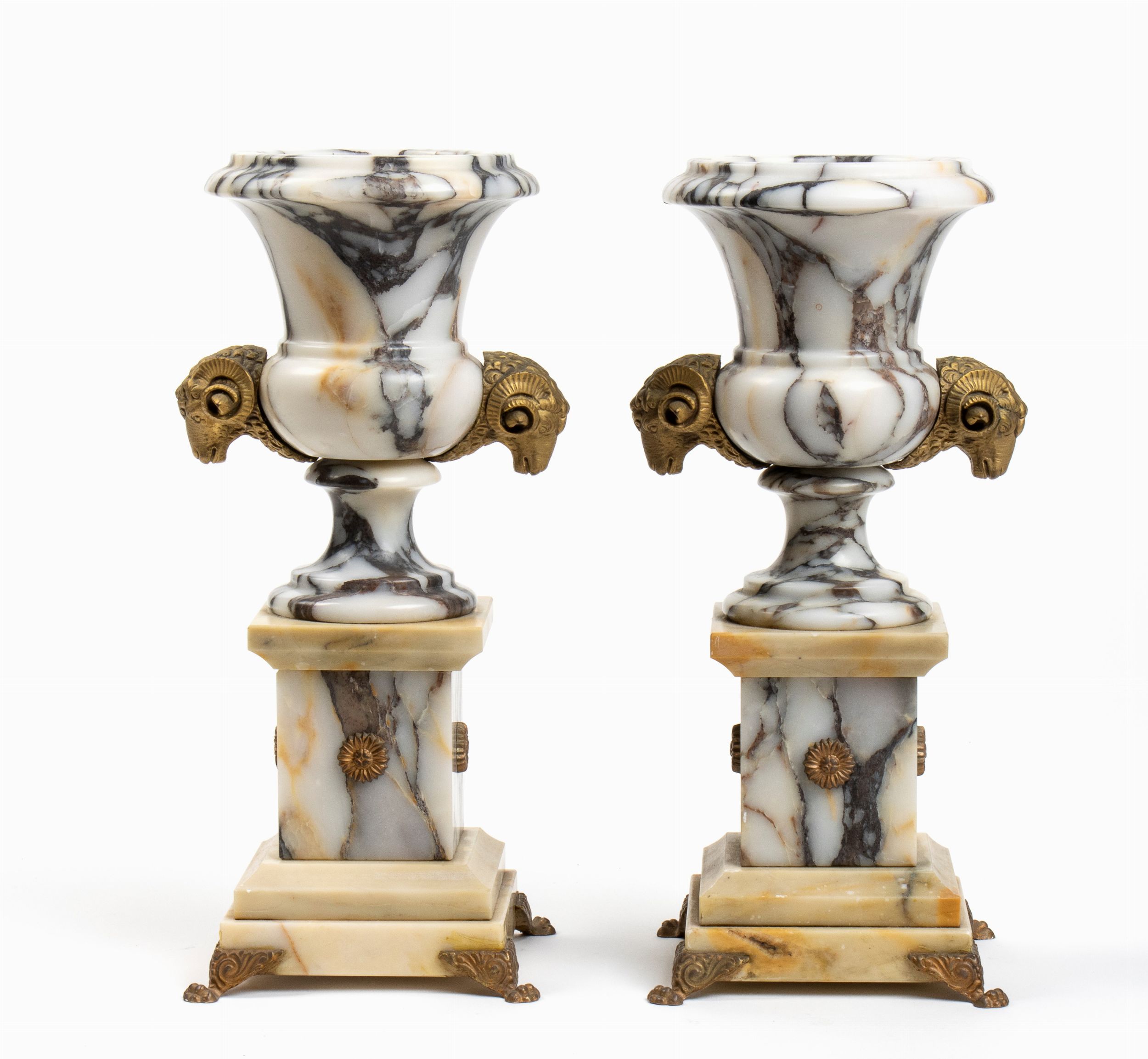 Coppia di piccoli vasi italiani in marmo Gran Tour