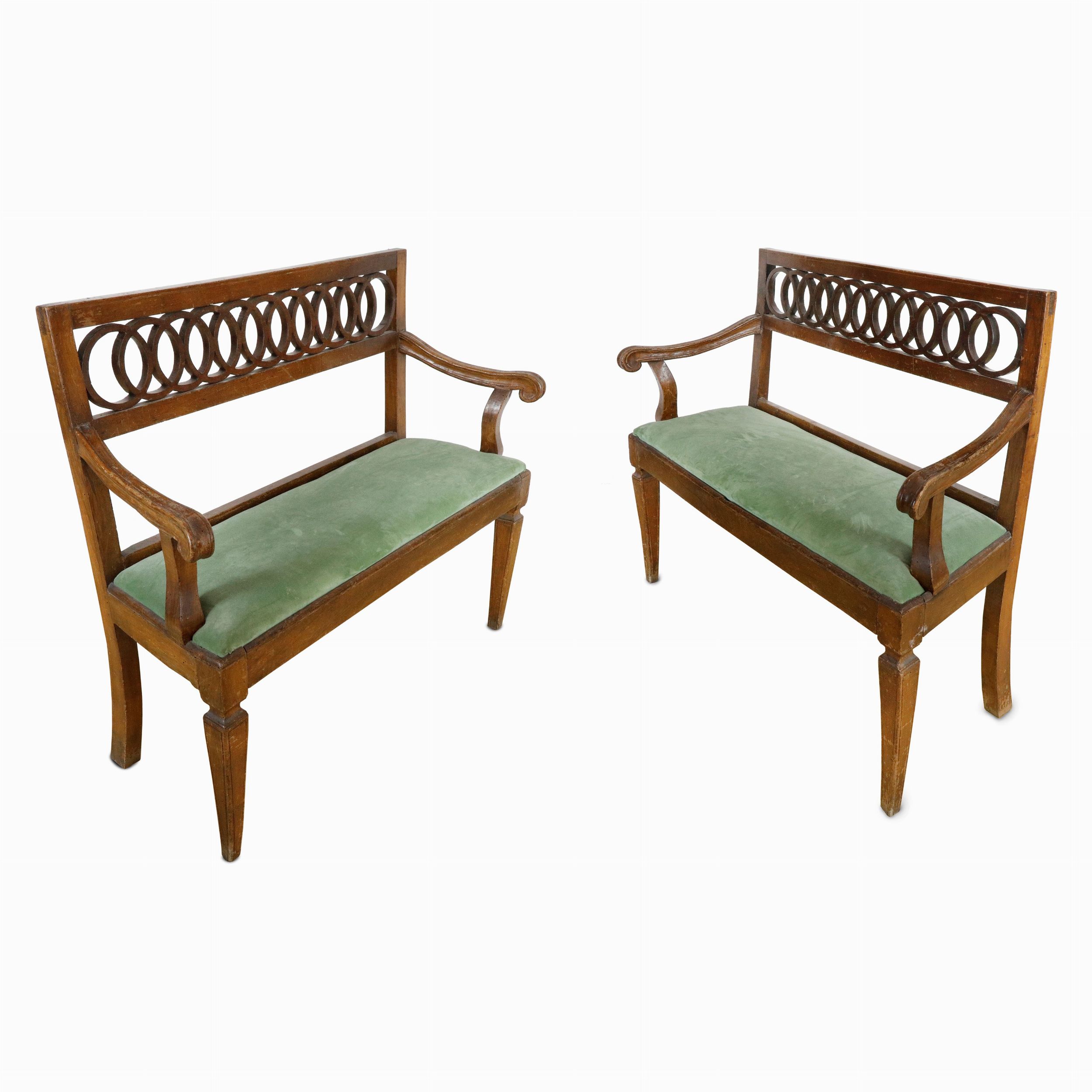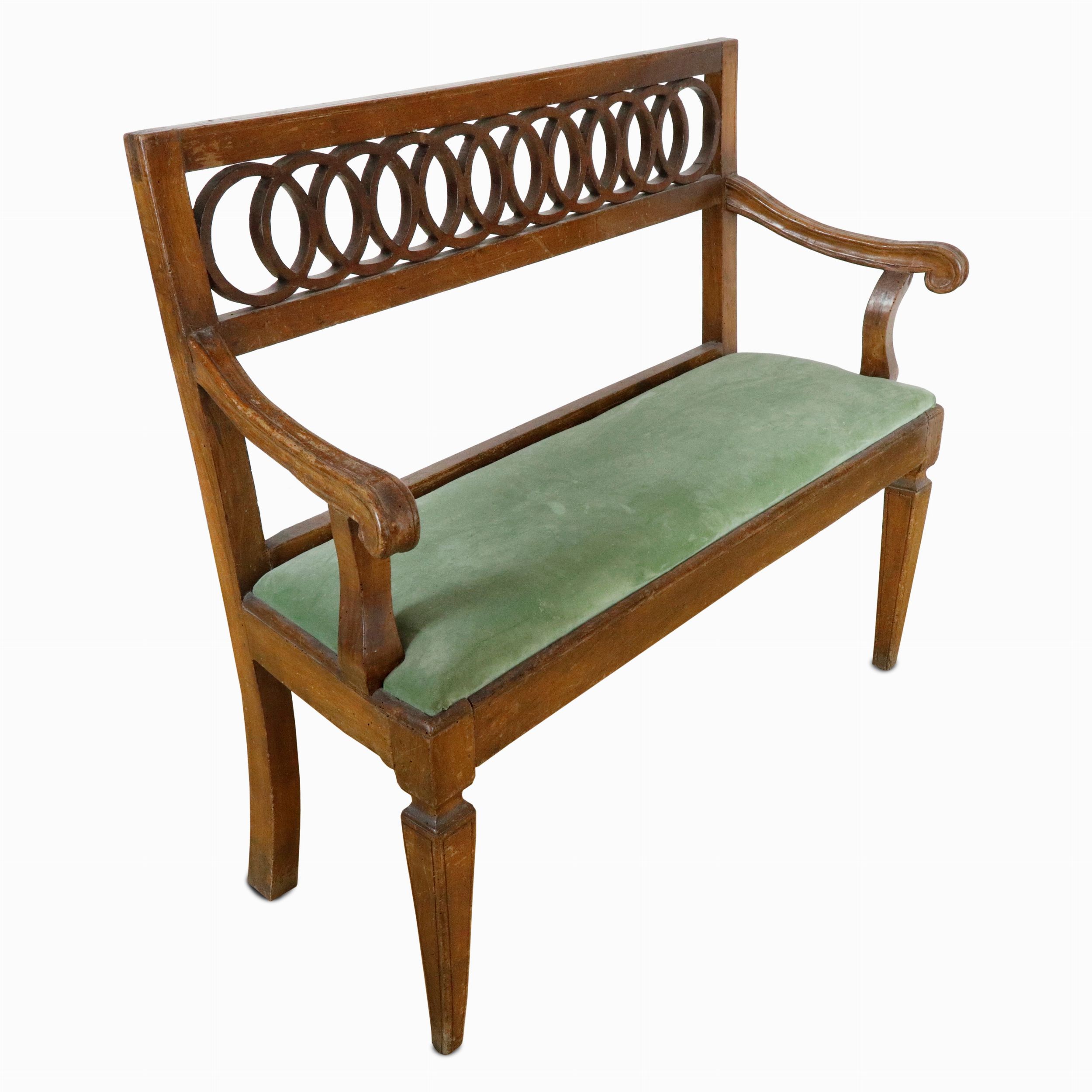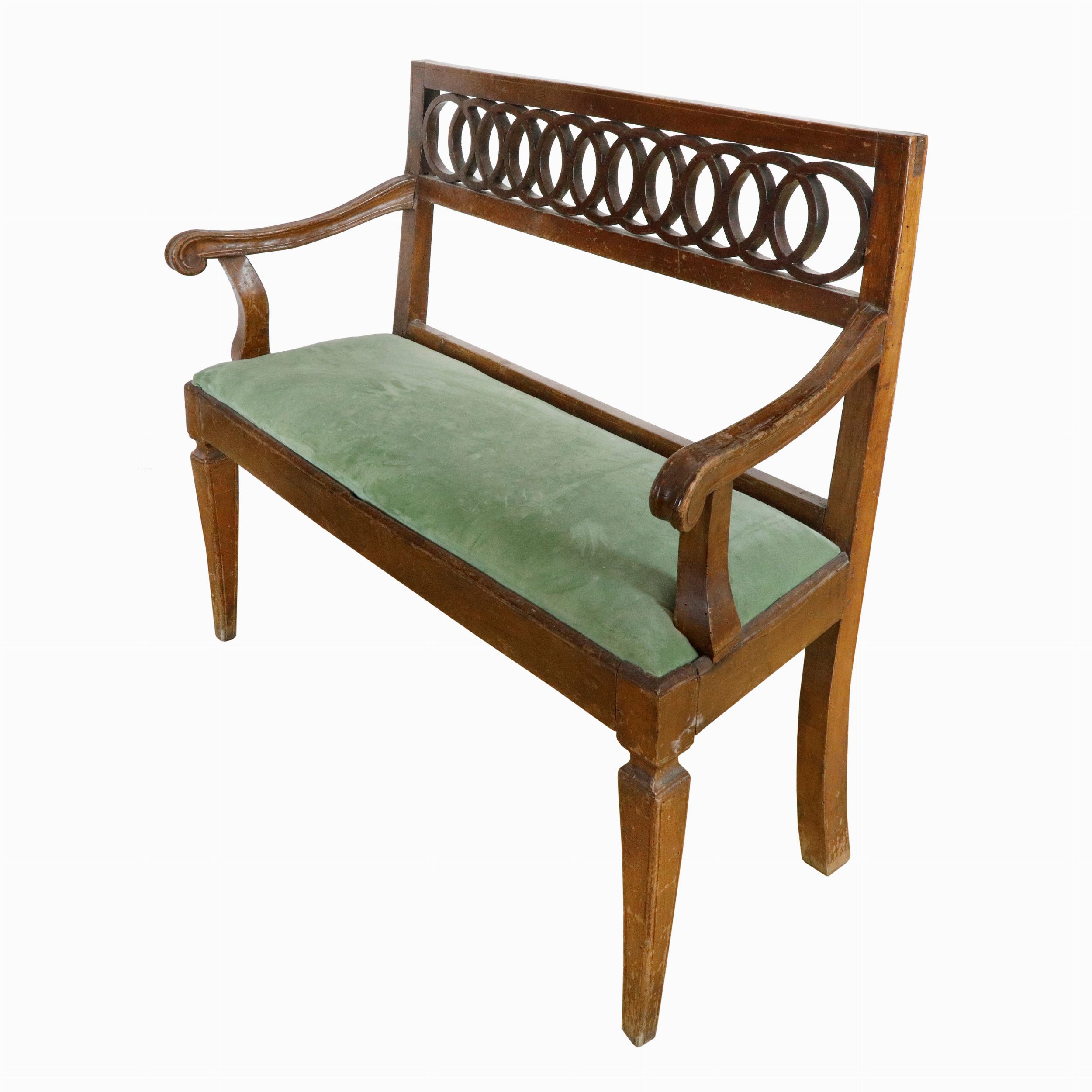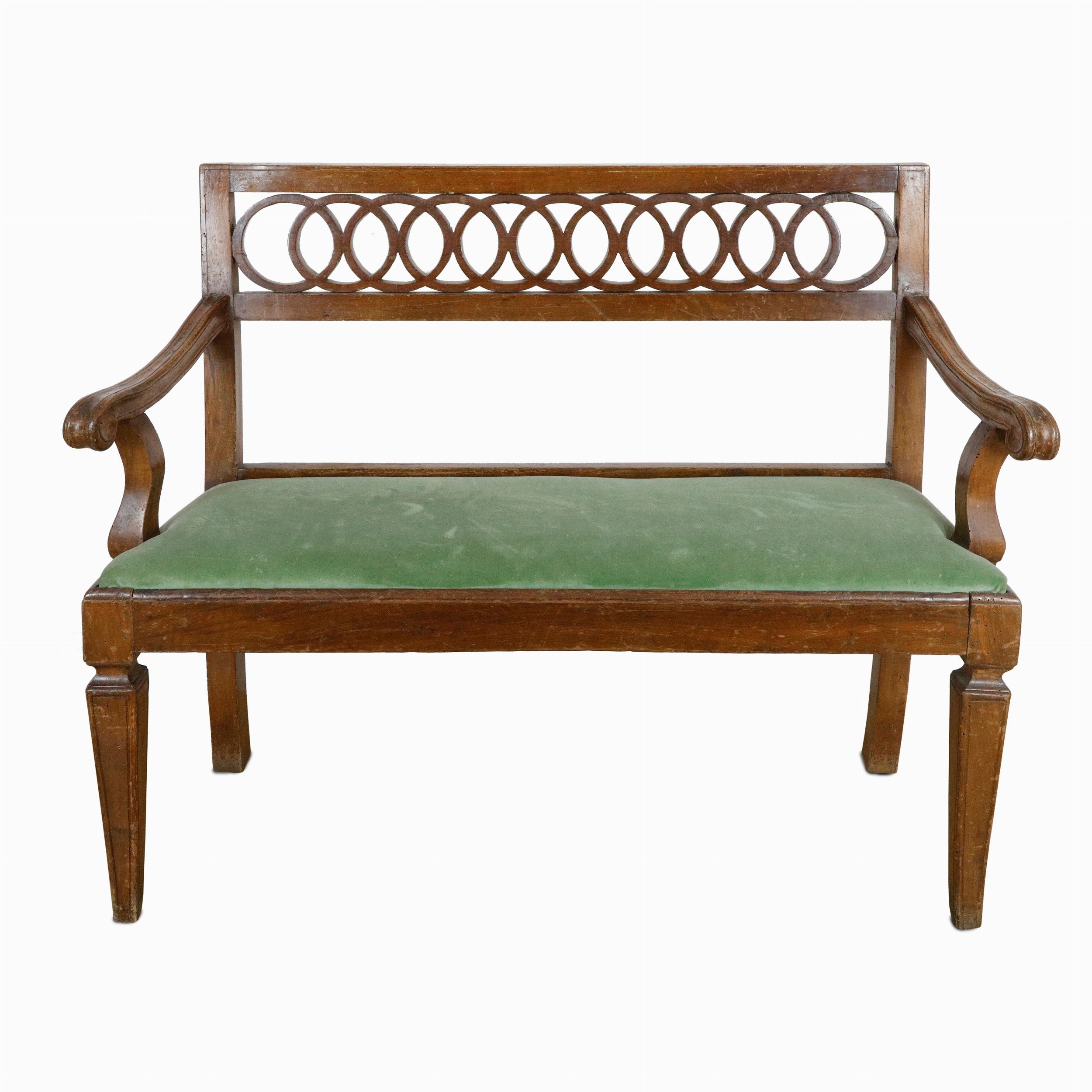 XVIII secolo in legno di noce, gamba tronco piramidale e spalliera in legno traforata a motivi geometrici. Stato di conservazione: **** buono.