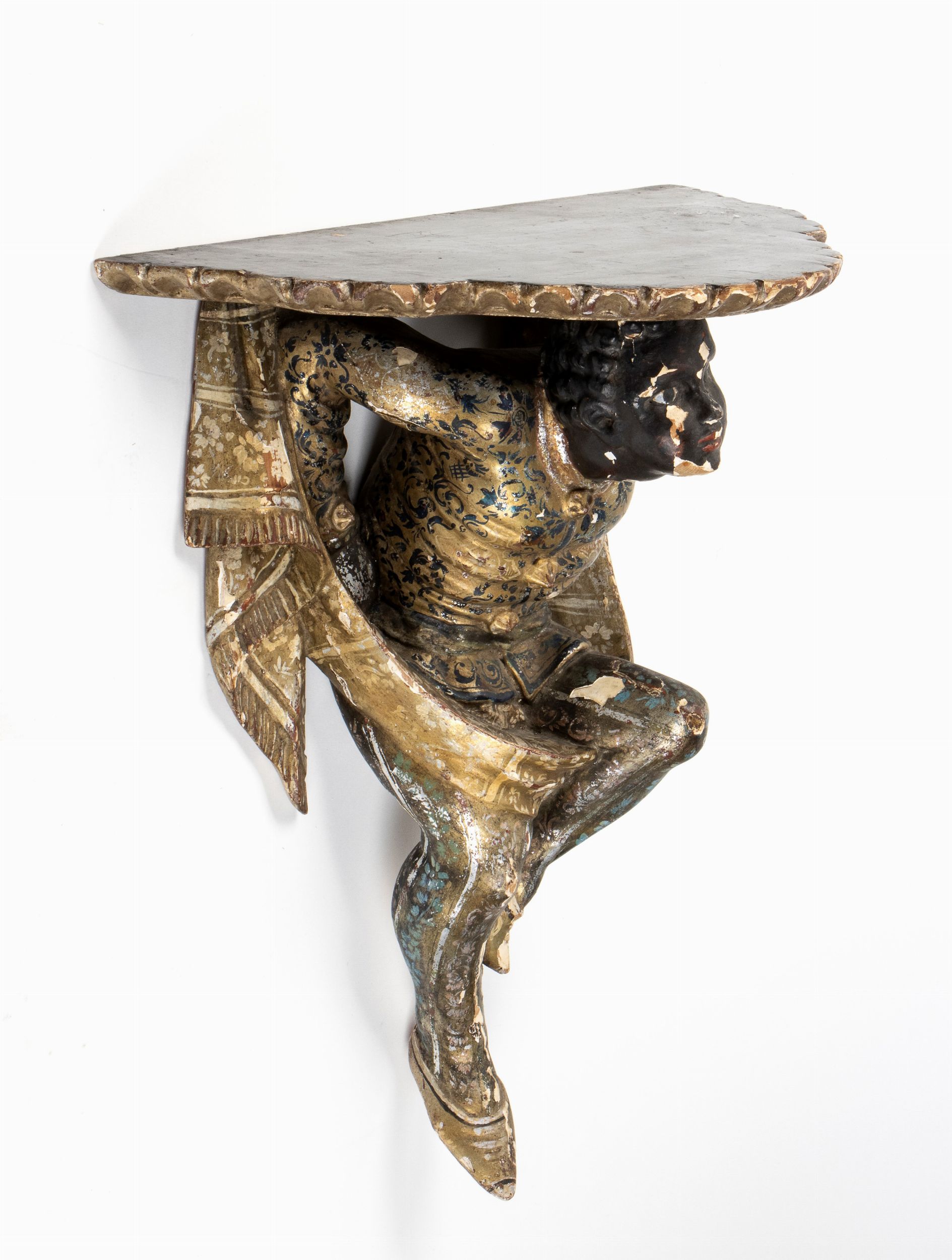 XVIII secolo da muro, con sostegno raffigurante un moro dipinto e laccato.