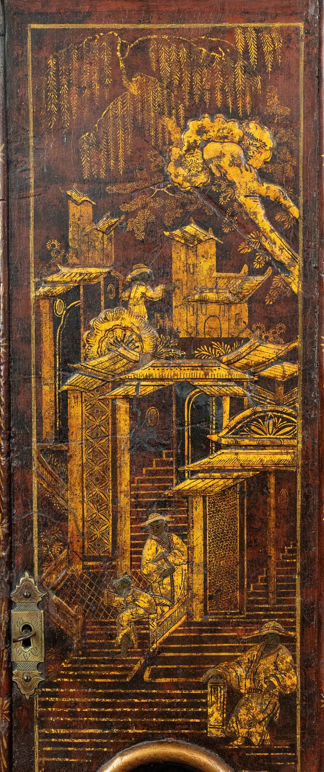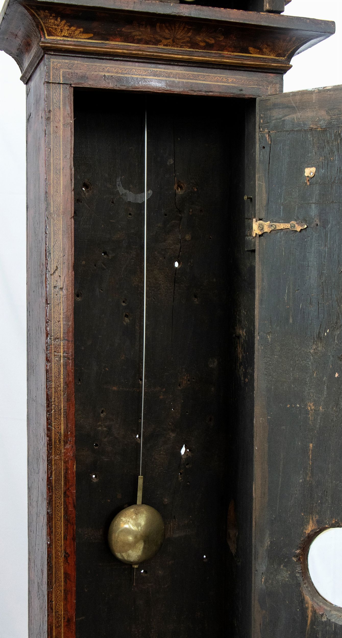 Altezza x larghezza x profondità : 70 x 42 x 17 cm. Inizio XIX secolo cassa con basamento rettangolare in marmo verde e bronzo dorato, sormontata da una raffigurazione di Achille in bronzo dorato. Quadrante circolare con numeri romani a due fori di carica con numeri romani. Movimento con sospensione a filo, regolatore a pendolo e suoneria delle ore e delle mezze su campana. Stato di conservazione: **** buono, attualmente marciante.