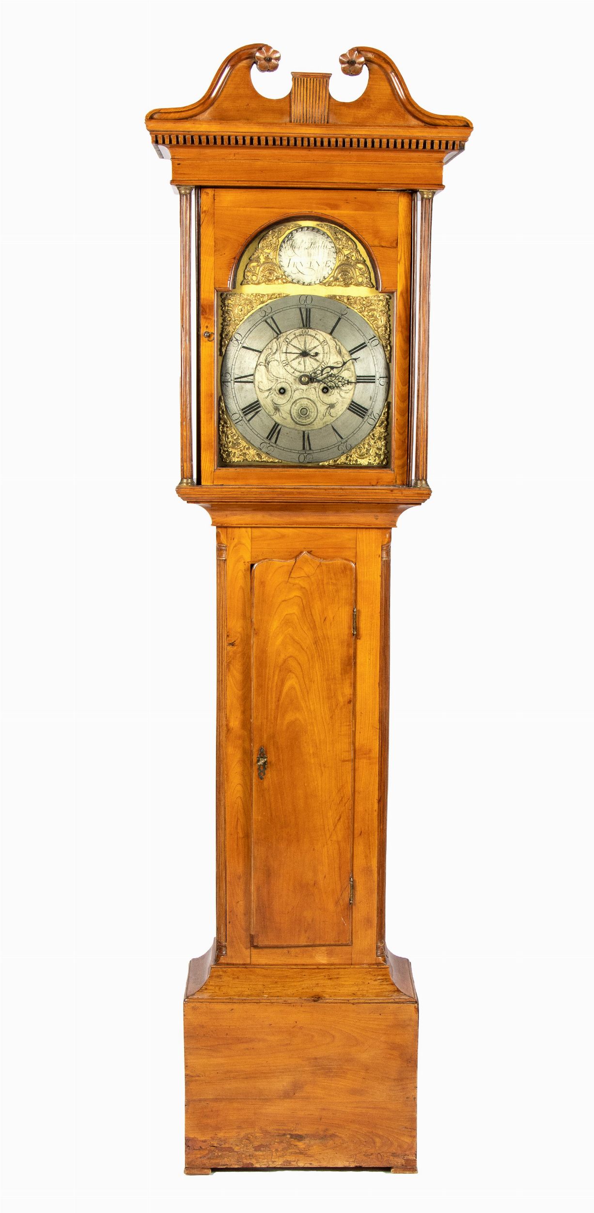 Altezza x larghezza x profondità : 218 x 60 x 30 cm. XIX secolo cassa in legno di pino placcata in cilegio, quadrante circolare in ottone e argento firmato Robert Smith Irven, con numeri arabi e numeri romani, quadranti sussidiari. Regolatore a pendolo e suoneria delle ore e delle mezze su campana. Robert Smith stava lavorando a Irvine nel 1820; un suo orologio a torre è infatti collocato presso Bute Museum, in 7 Stuart St, Rothesaydi Isle of Bute. Stato di conservazione: *** discreto, restauri pregressi.