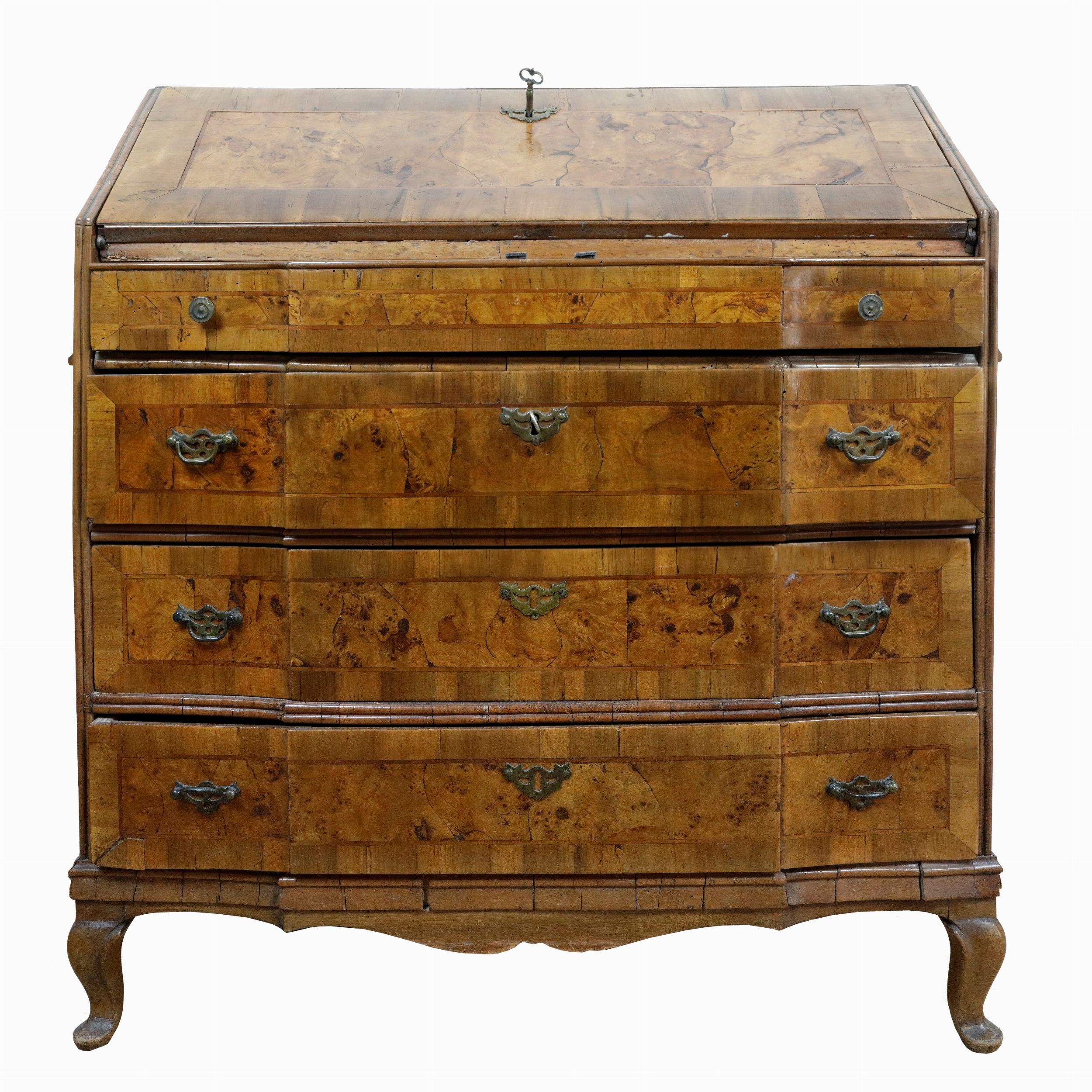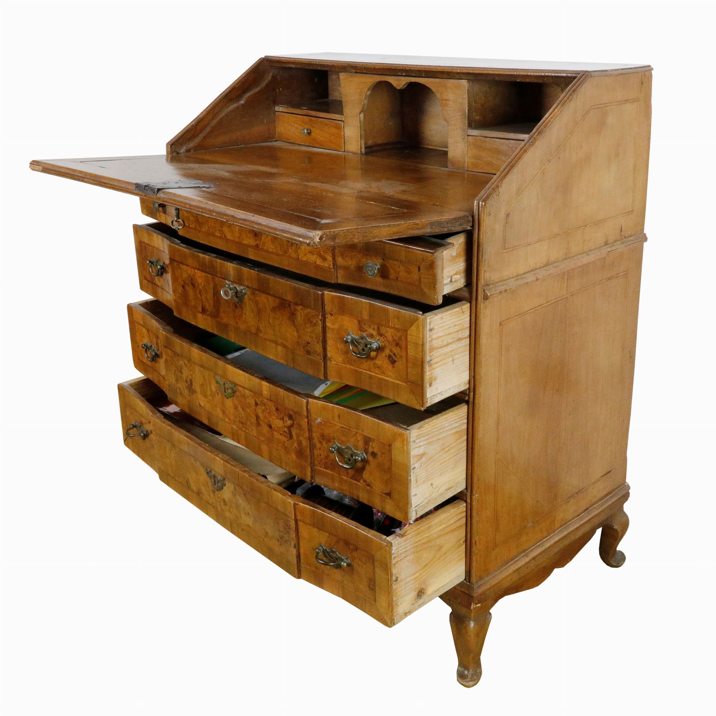 XVIII secolo in legno di noce, intarsiata in legni di frutto, leggermente mossa. Ferramenta originale. Area veneta. Stato di conservazione : **** buono.