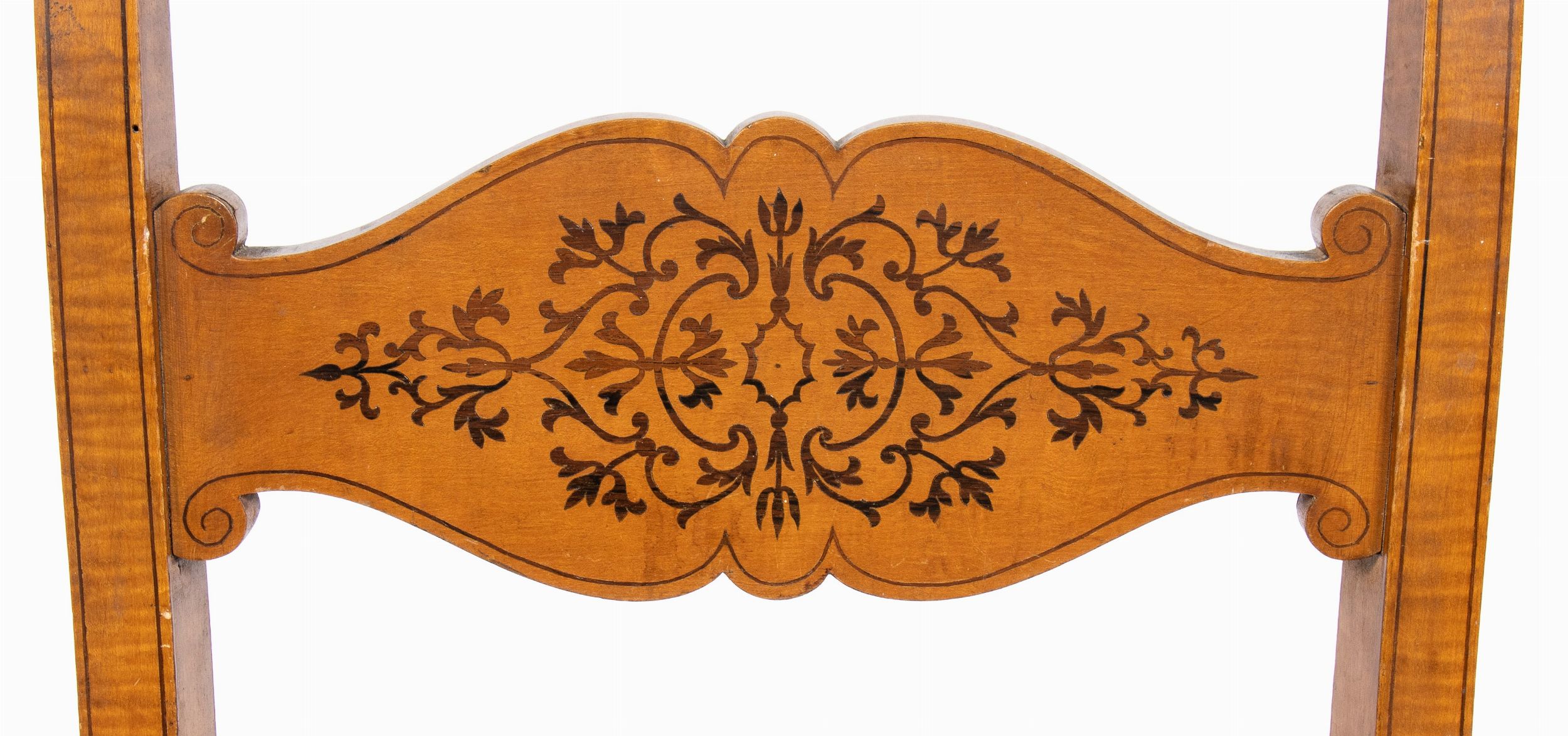 Altezza x larghezza x profondità : 87 x 44 x 38 cm. Seduta a 43 cm. XIX secolo gruppo 4 di sedie con seduta in paglia di Vienna gambe a sciabola intarsi su spalliera e lungo le gambe. Stato di conservazione: **** buono.