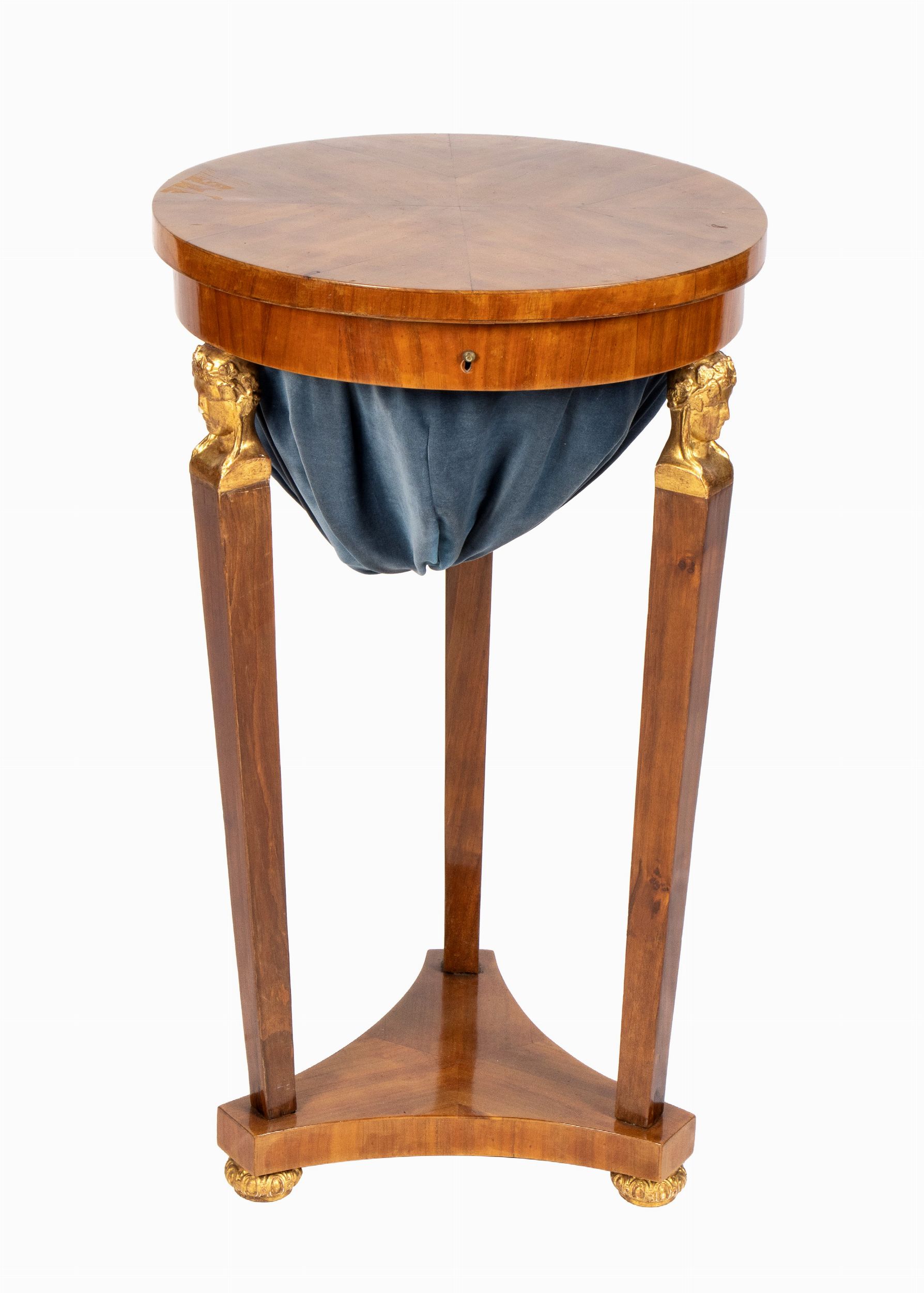 XIX secolo in legno di noce, con basamento tripode con cariatidi. Area lucchese. Stato di conservazione: **** buono.