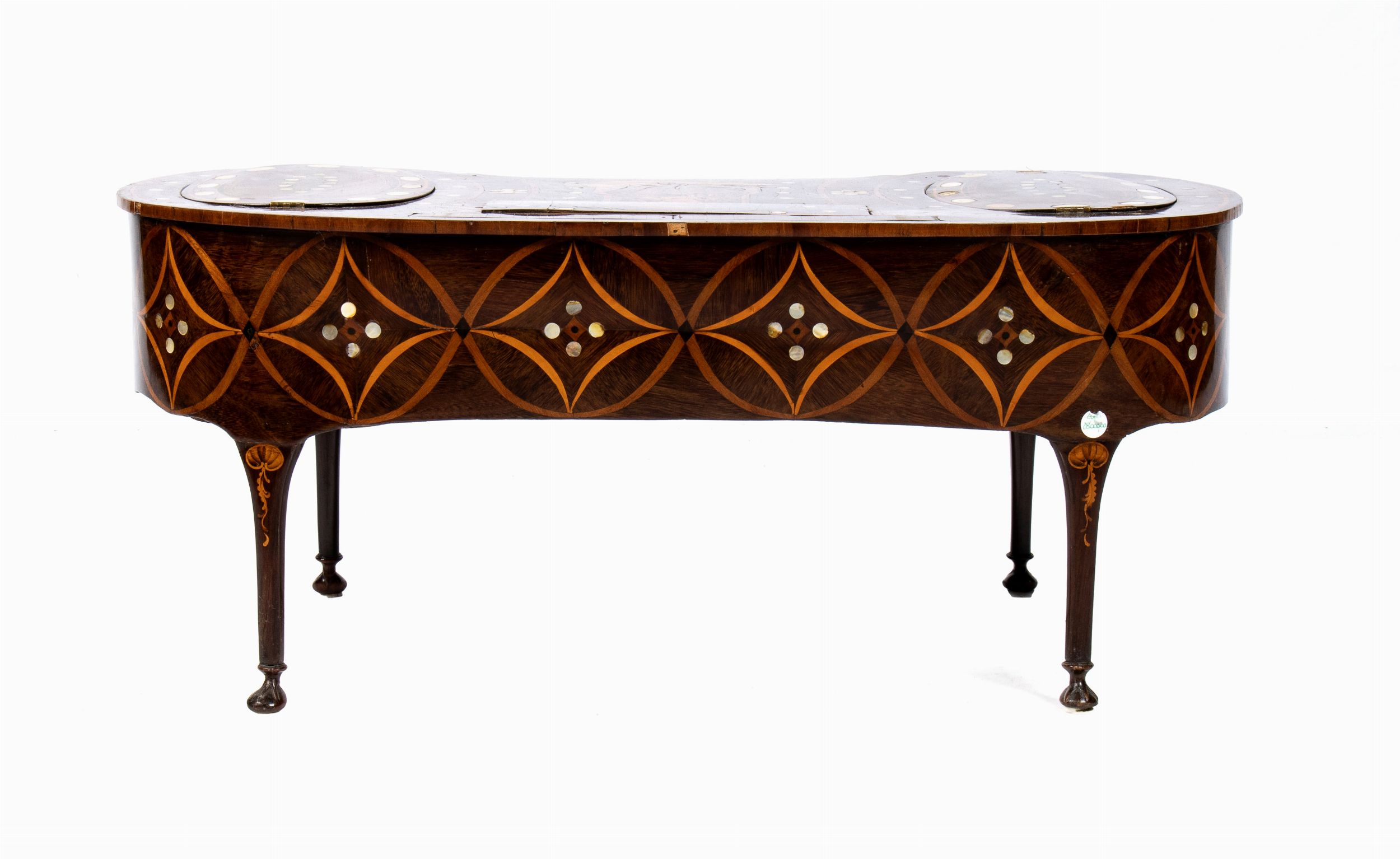 Tavolino - scrittoio italiano intarsiato in legni di frutto e madreperla