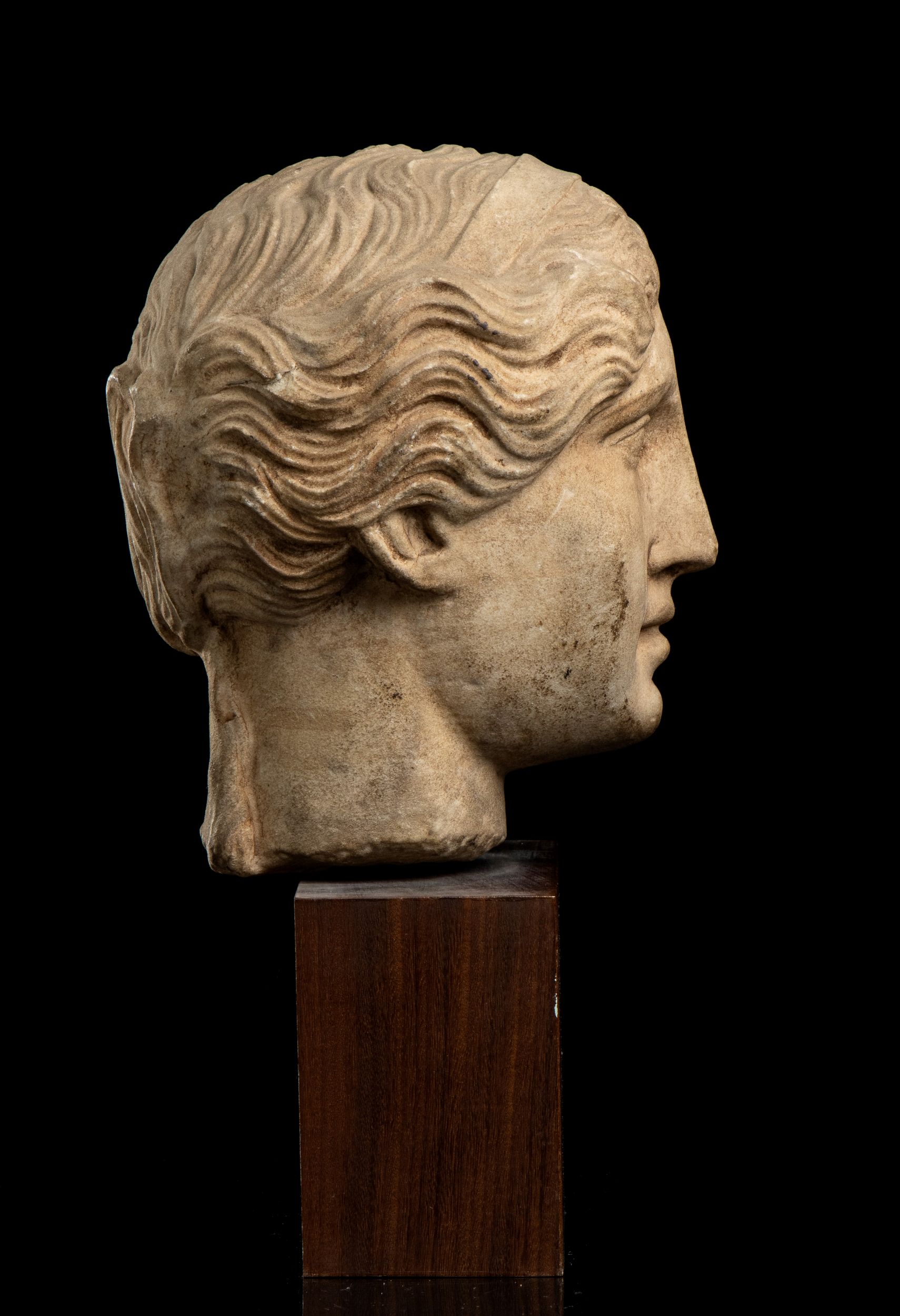 XX secolo copia di scultura romana raffigurante giovane donna su basamento a plinto in legno . Stato di conservazione: **** buono