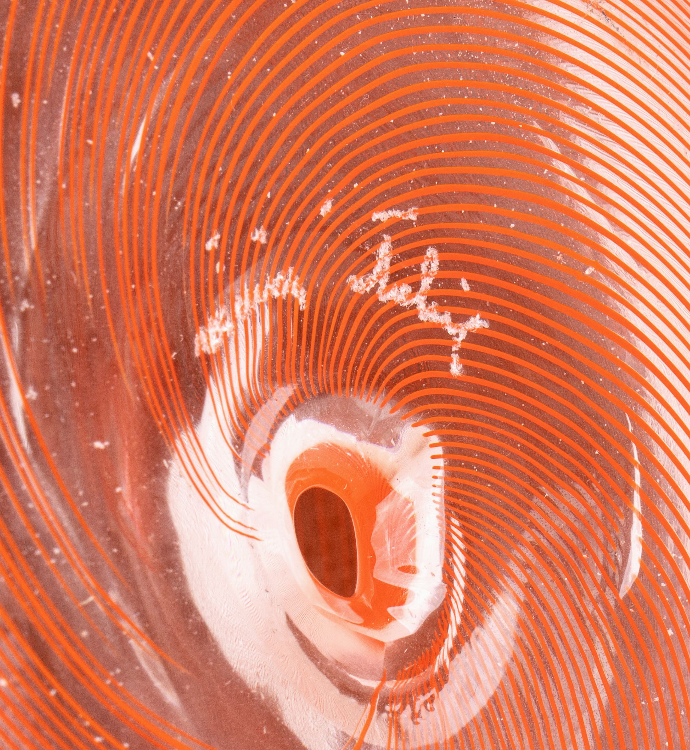 Anni '80 nei toni dell'aranzio a filigrana neraa. Modello 415.23. Firma incisa. Stato di conservazione: **** buono, minori segni d'uso commensurati all'uso nel tempo. Altezza: 31 cm. Peso: 2030 gr.