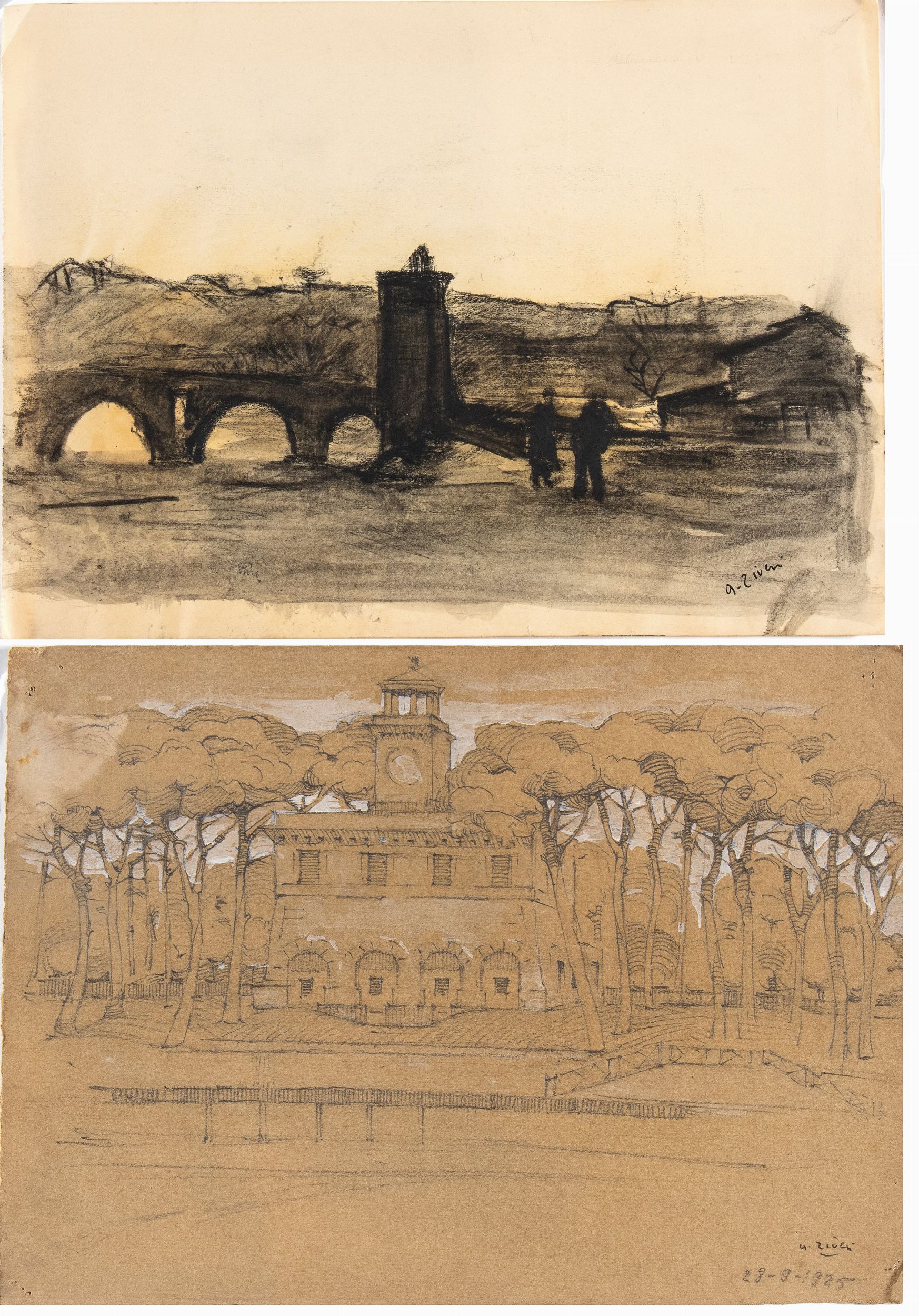 Anni 20/30 Ponte Milvio: firmato in basso a destra: A. Ziveri / Villa Borghese: firmato e datato in basso a destra: A. Ziveri, 28-09-1925