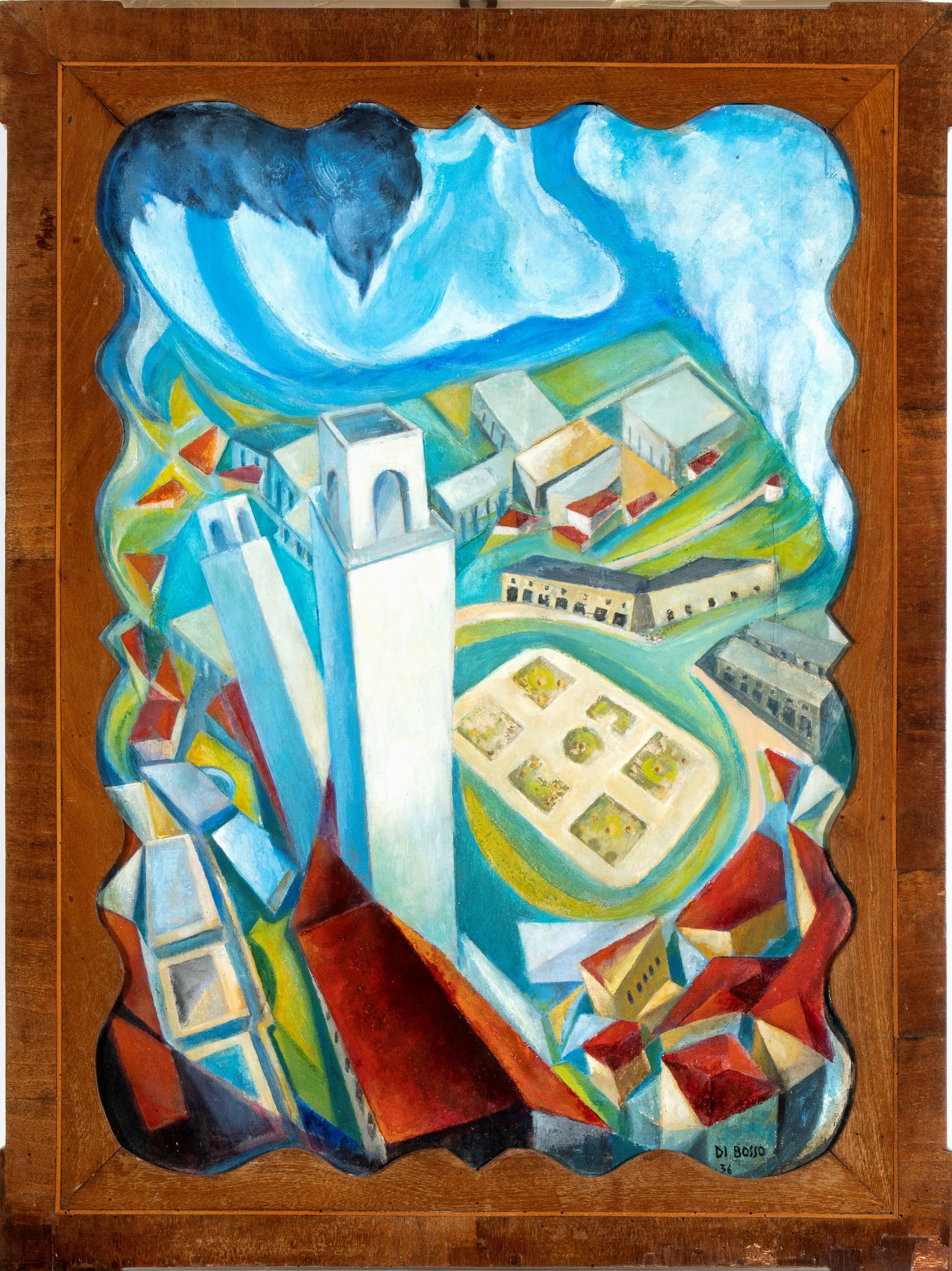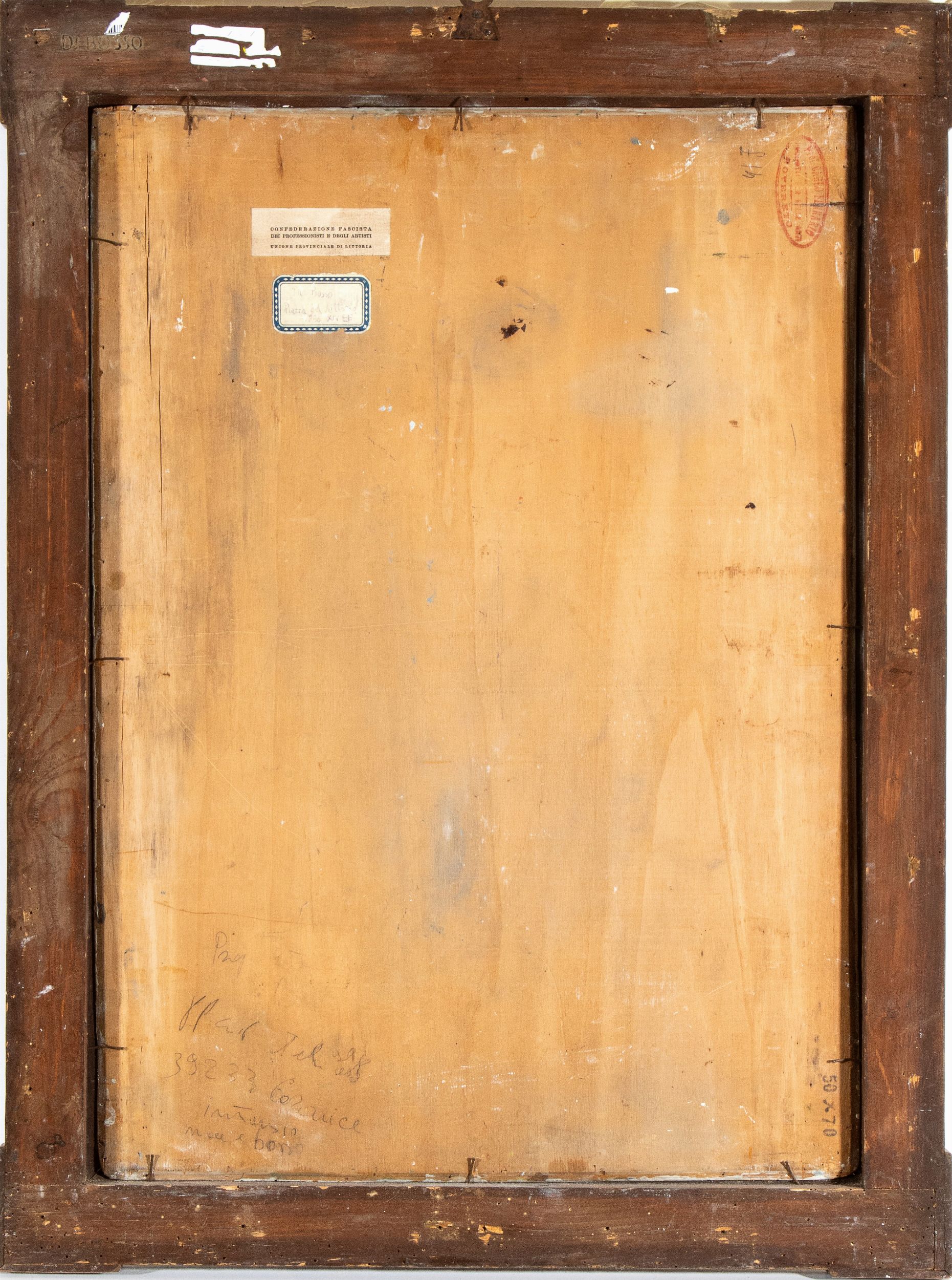 1936 Firmato e datato in basso a destra: Di Bosso, 36, al retro etichetta della Confederazione fascista dei Professionisti e degli Artisti - unione provinciale di Littoria; cornice coeva con firma incisa: Di Bosso