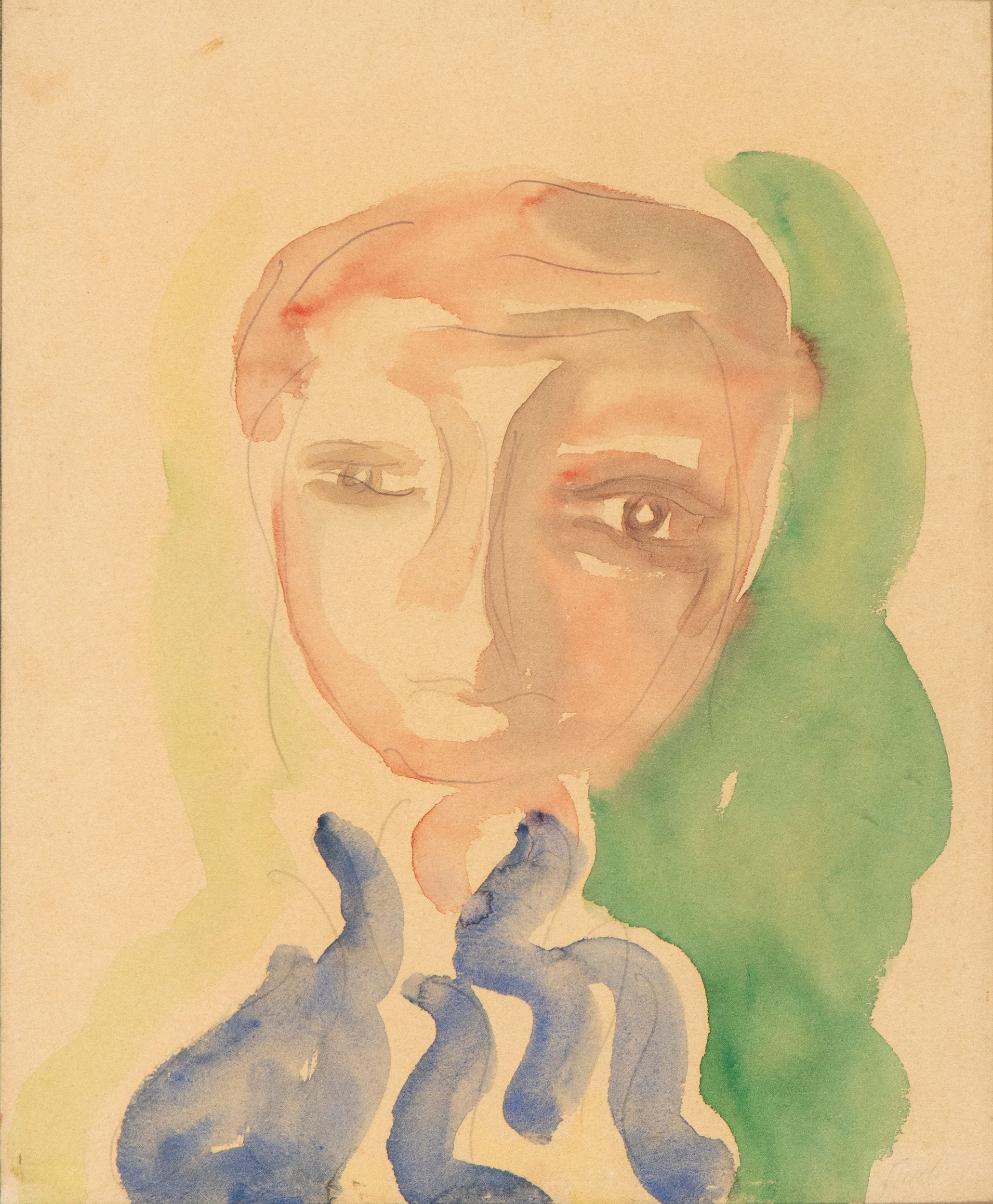 Acquarello e matita su carta applicata su tela, 48 x 39,5 cm