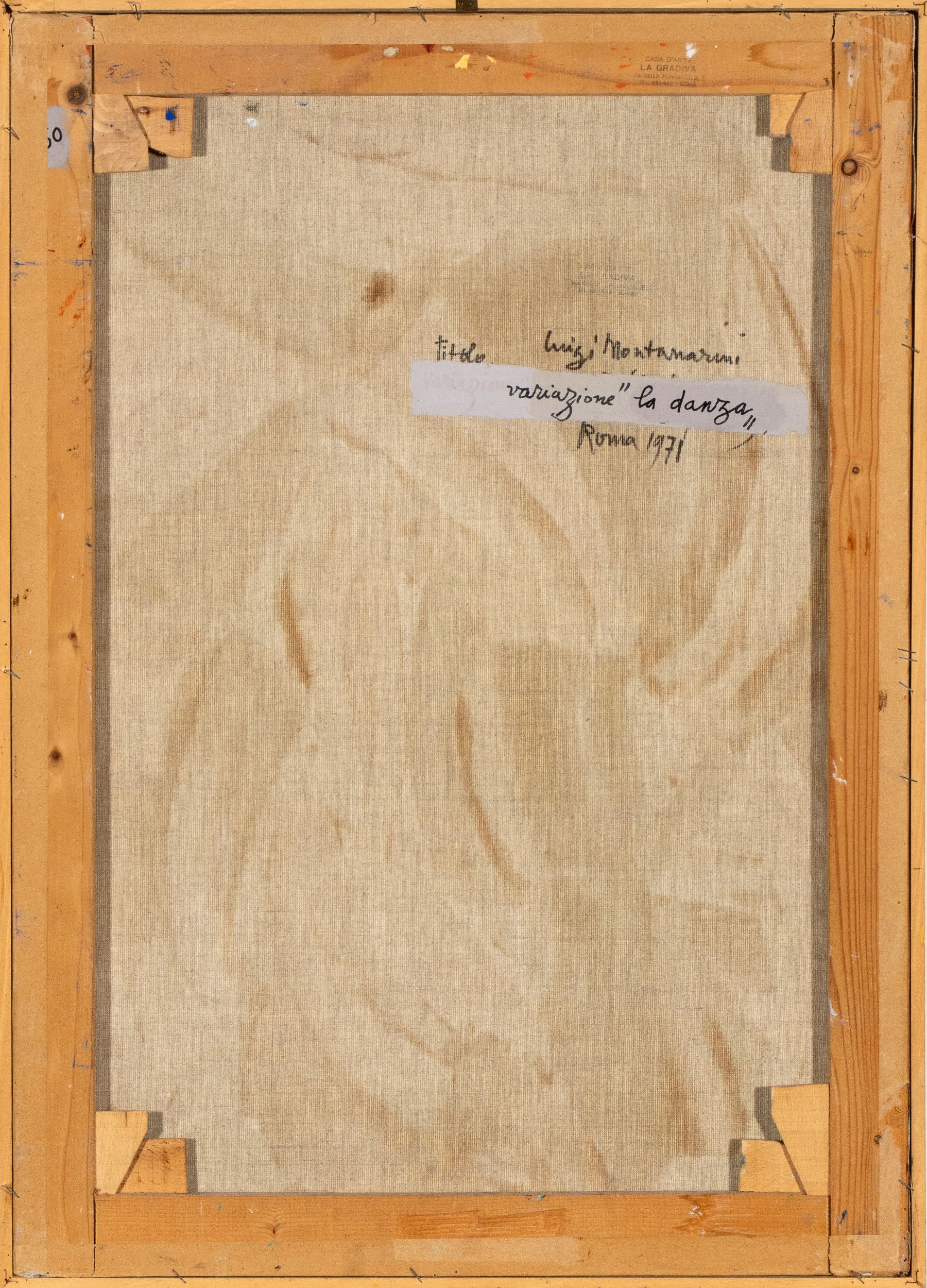 1971 Firmato in basso a destra: Montanarini, al retro firmato, titolato e datato: Luigi Montanarini, Variazione 'La Danza', Roma, 1971 e stampo de 'La Gradiva' di Roma