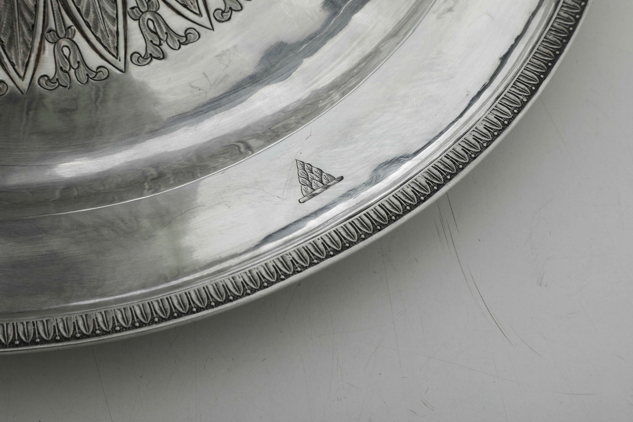 Brocca e piatto. Argento fuso, sbalzato e cesellato. Roma metà del XIX secolo. Marchio [..]