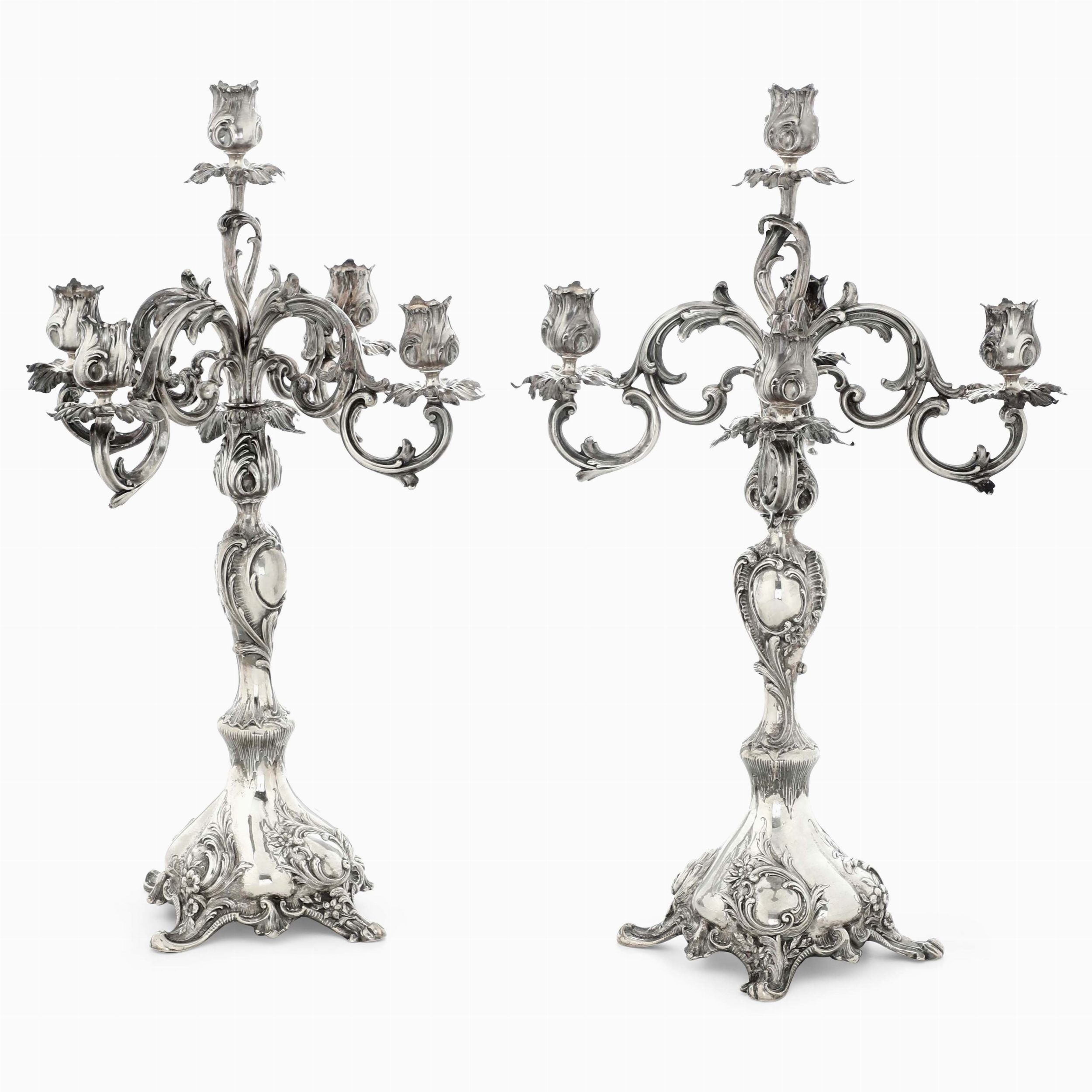 Coppia di candelabri a cinque fiamme. Germania, XIX-XX secolo