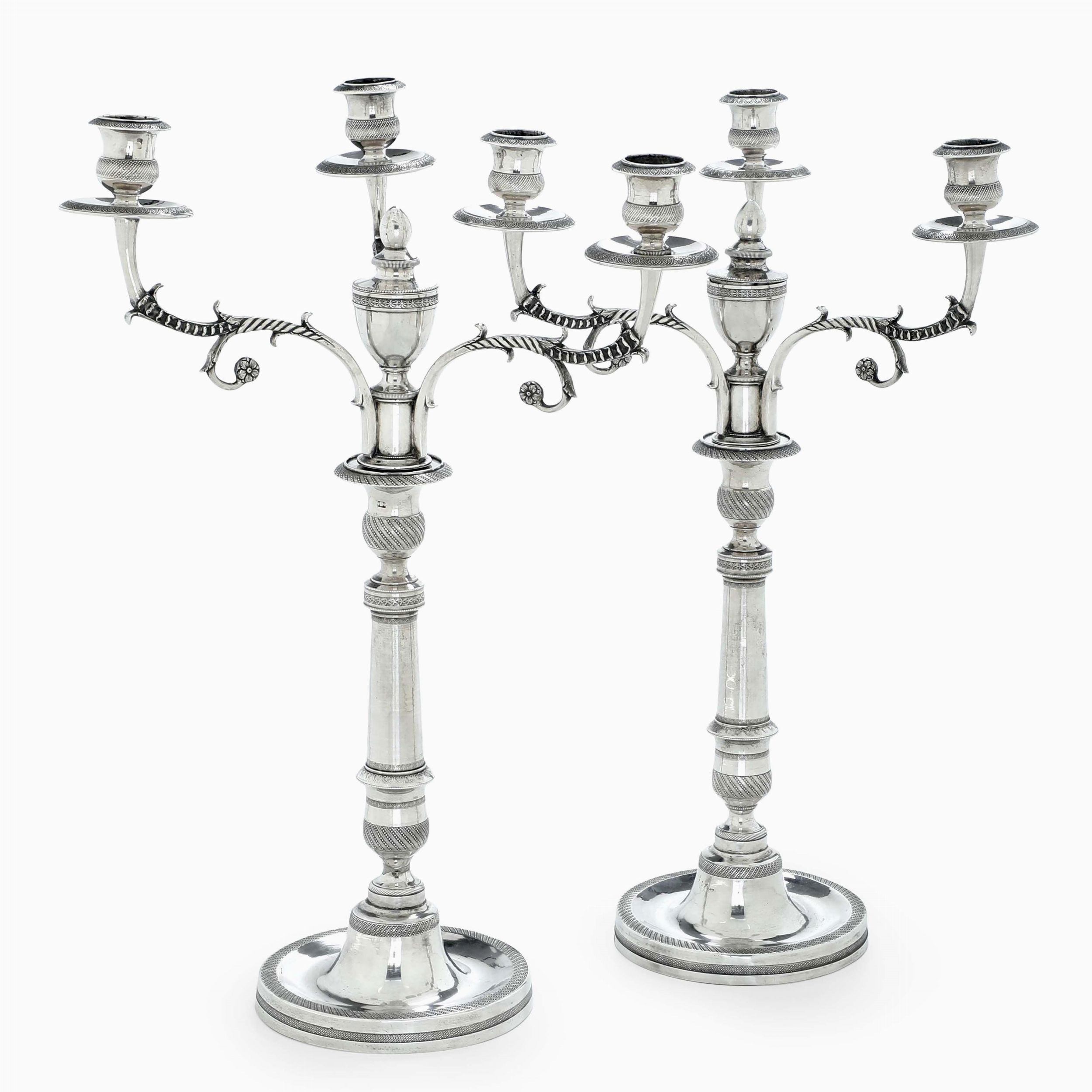 Coppia di candelabri a quattro fiamme. Napoli, prima metà del XIX secolo. Saggiatore [..]