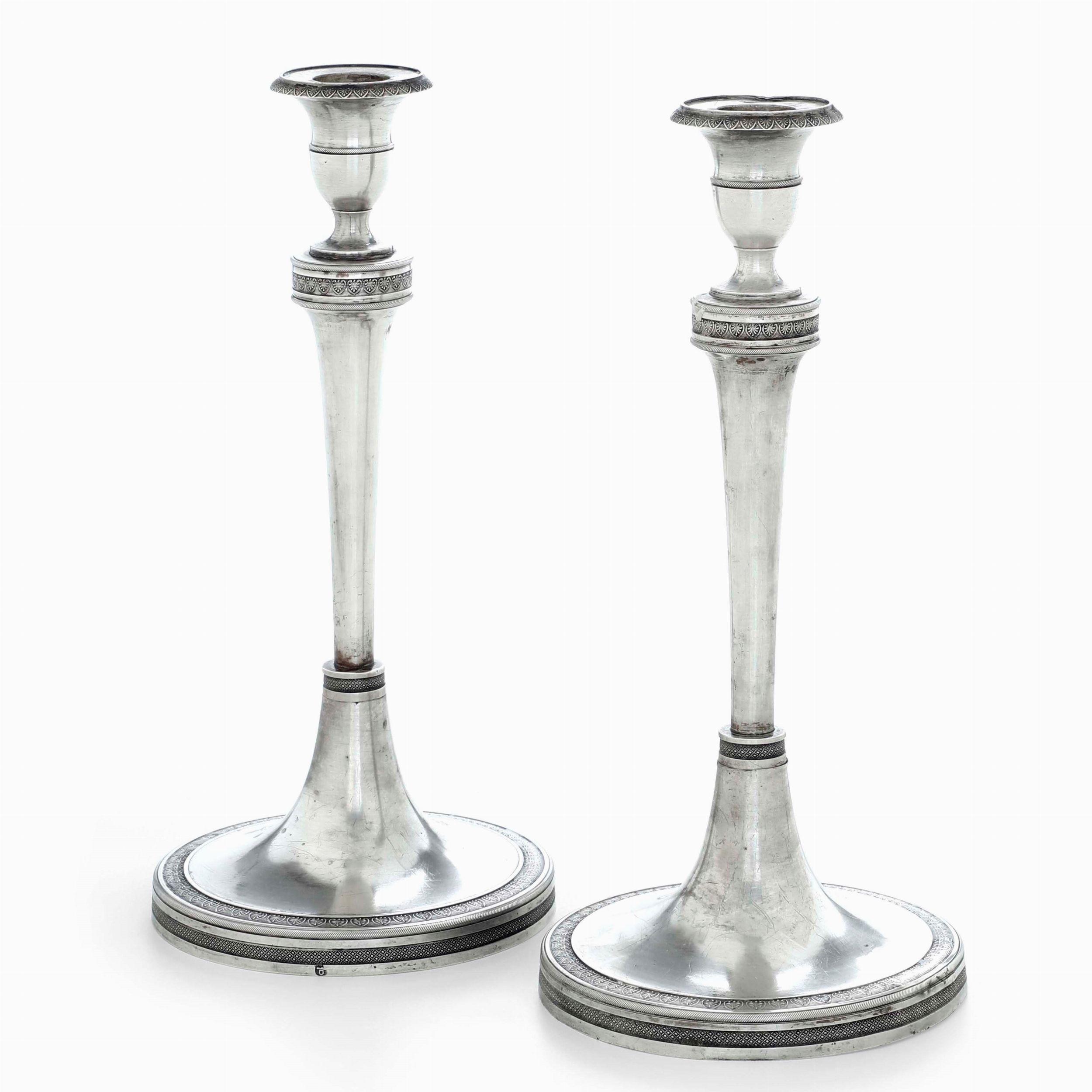Coppia di candelieri. Napoli, 1809-1824. Marchio dell'argentiere parziale di difficile [..]