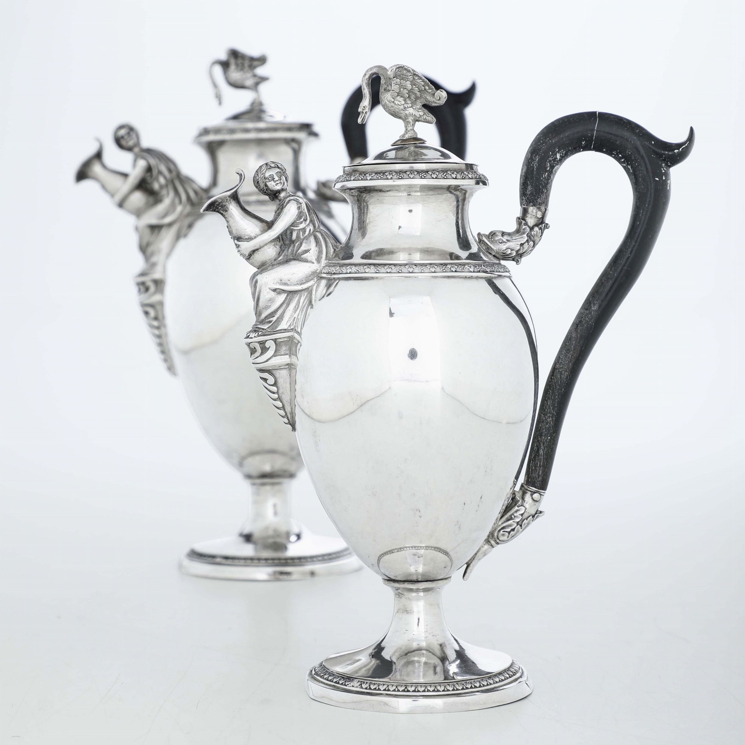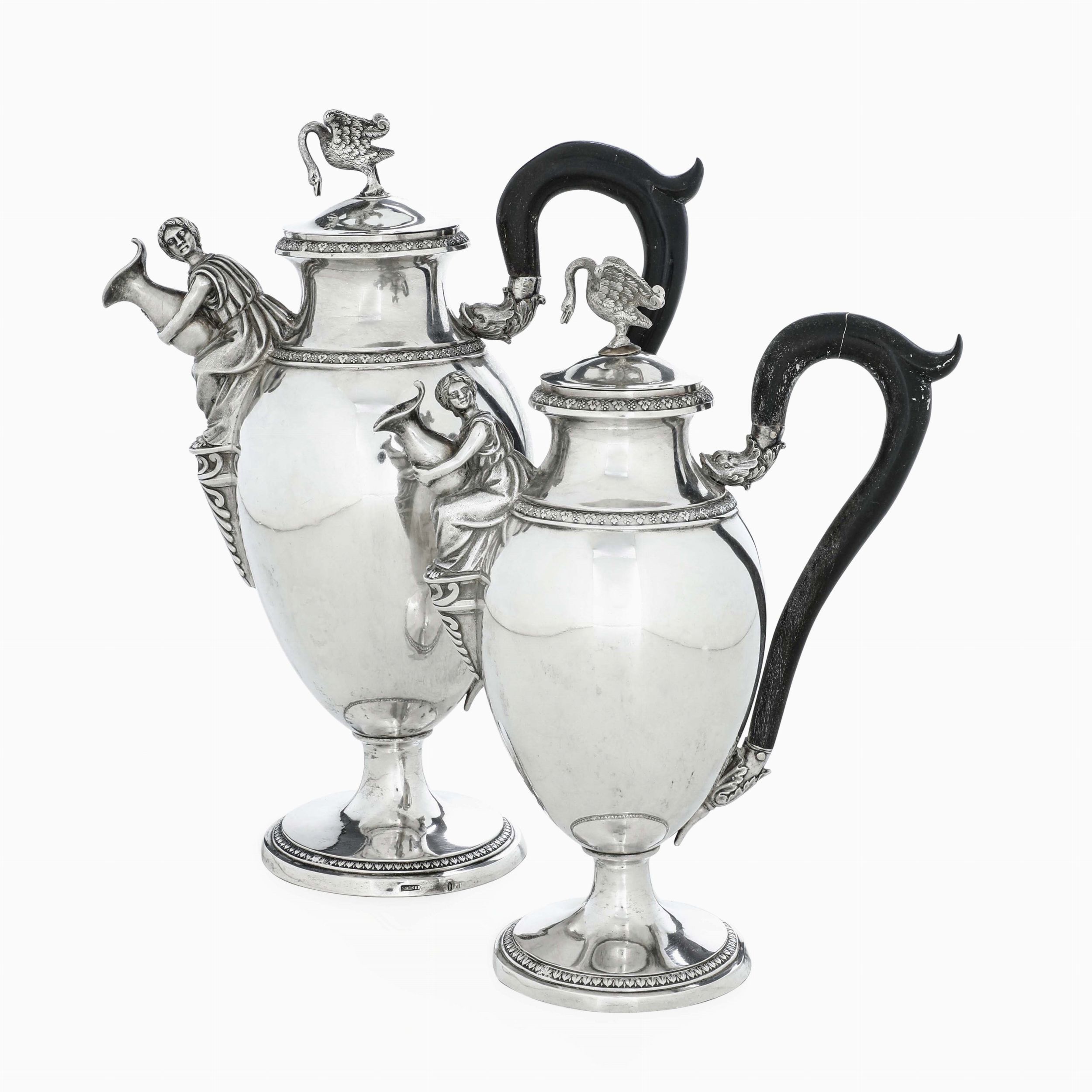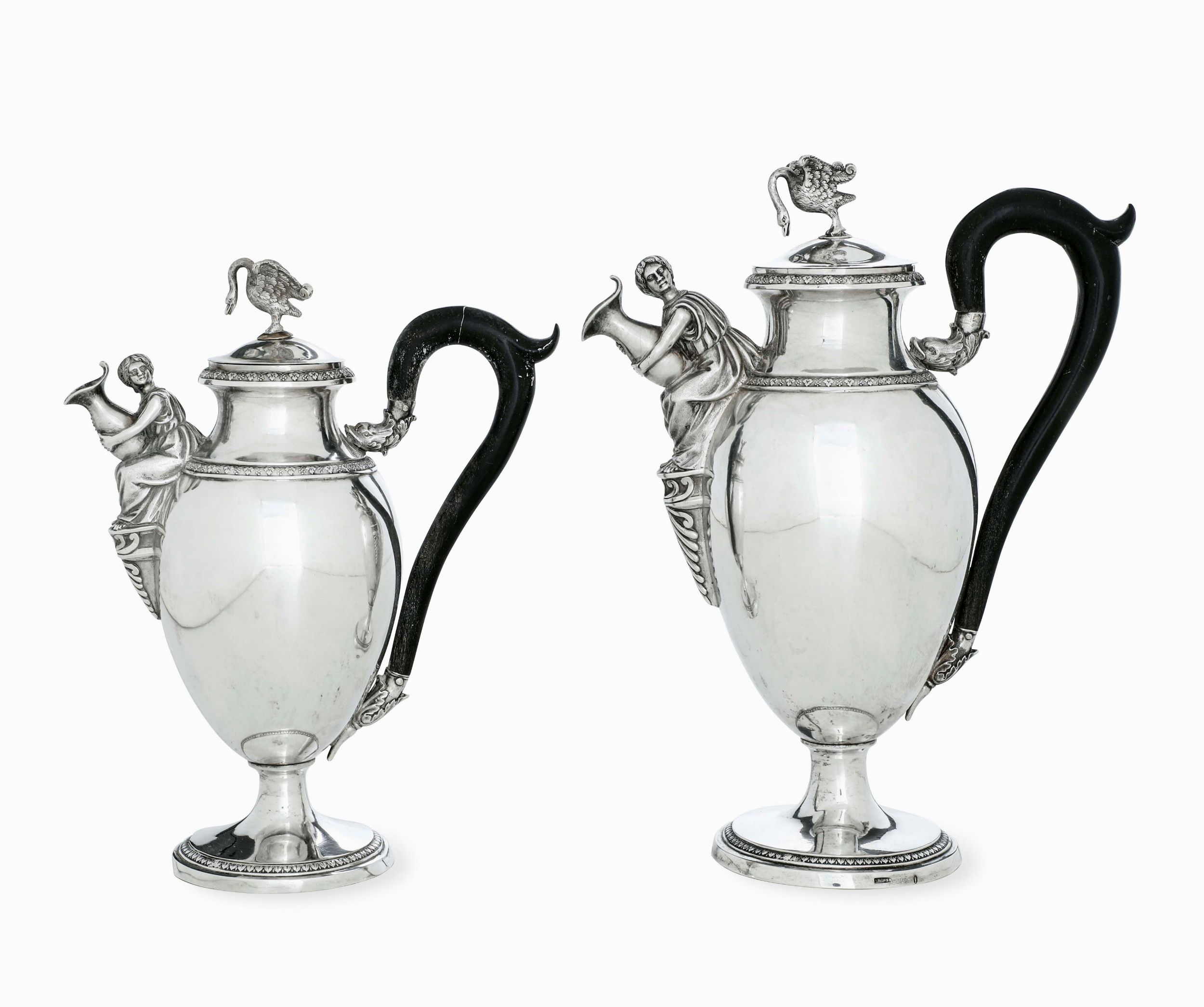 Due caffettiere. Argento fuso, sbalzato e cesellato. Ausburg 1823. Argentiere Johanneorg [..]