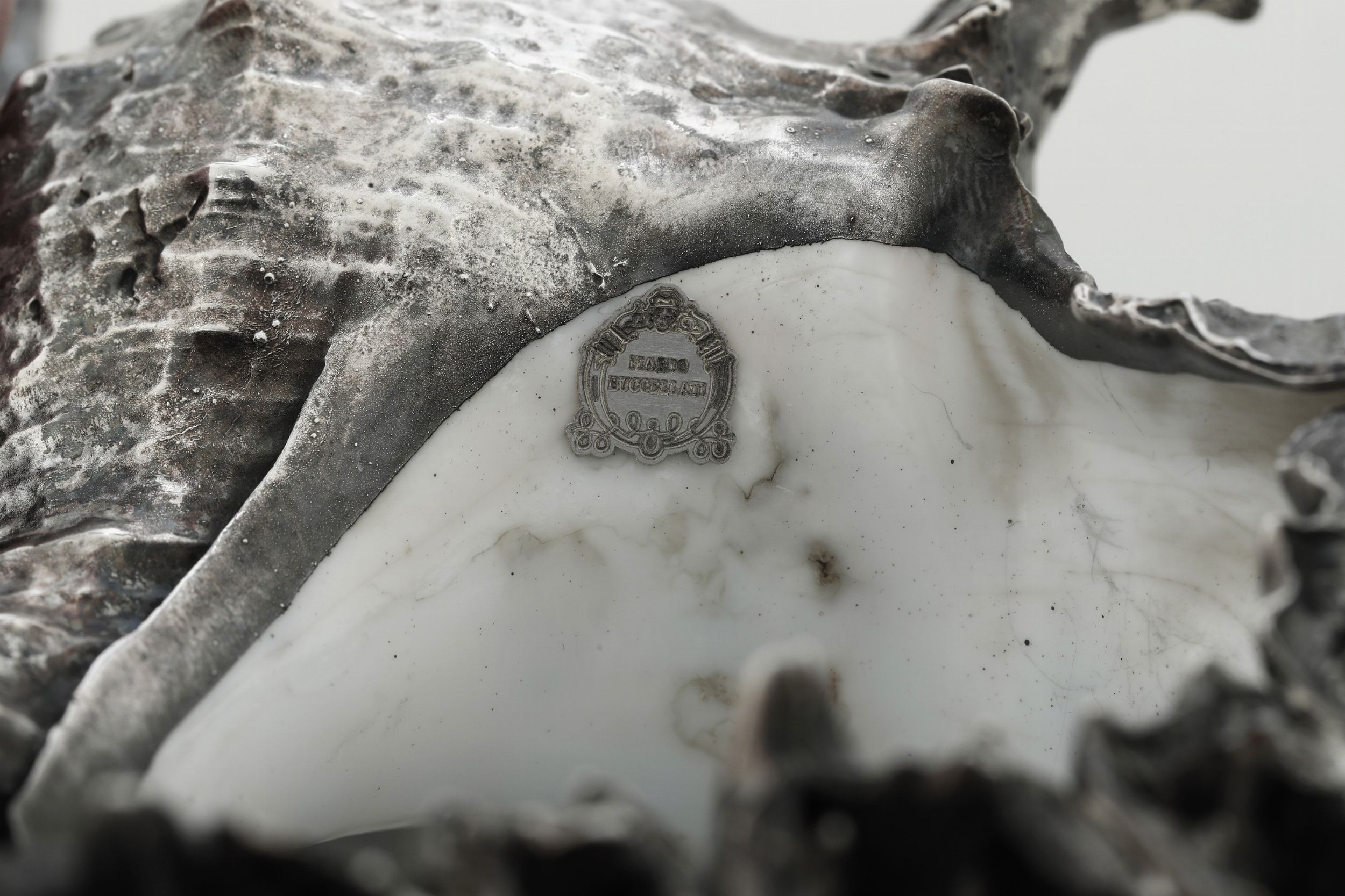 Grande conchiglia rivestita in argento. Etichetta a scudo Mario Buccellati, Italia [..]