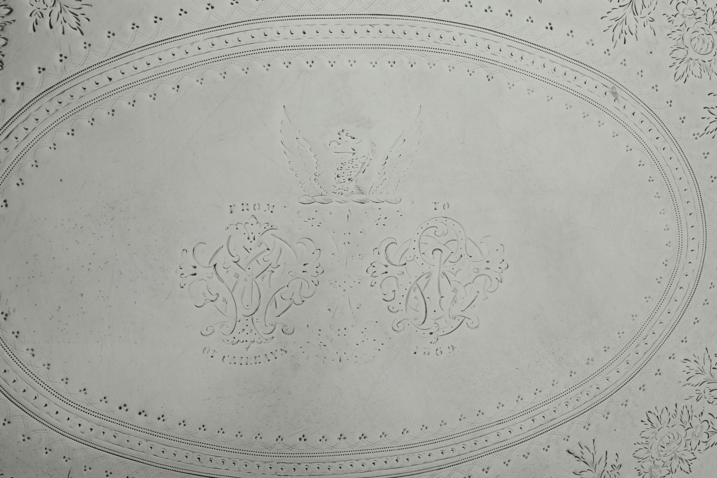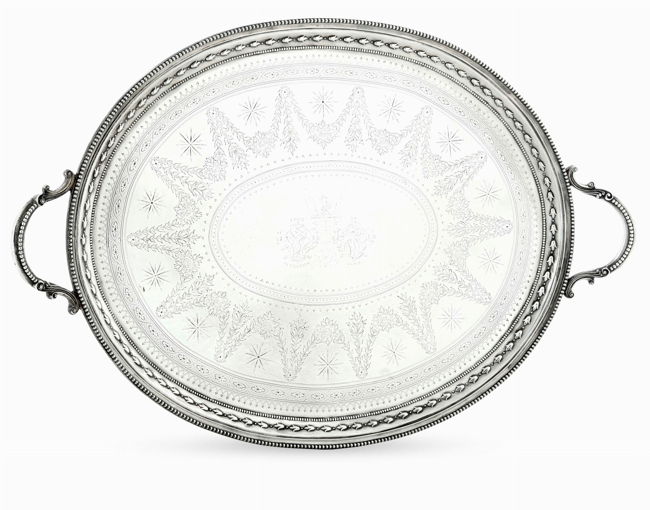 Monumentale vassoio biansato. Londra, 1868. Argentiere Daniel & Charles Houle